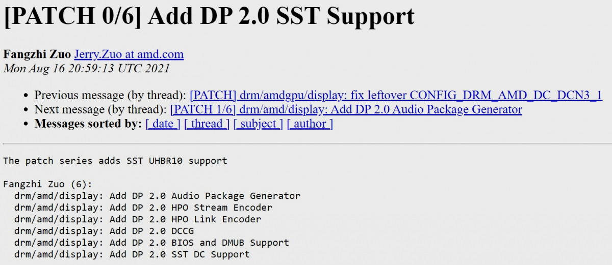 La información ha sido extraída de un parche para los controladores de AMD en Linux, y es una noticia muy positiva, ya que el estándar DisplayPort 2.0 eleva el ancho de banda máximo hasta los 80 Gbits por segundo, es decir, el triple de lo que obtendríamos con un conector DisplayPort 1.4.