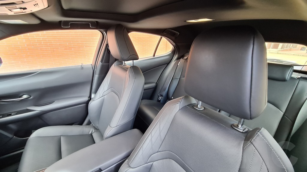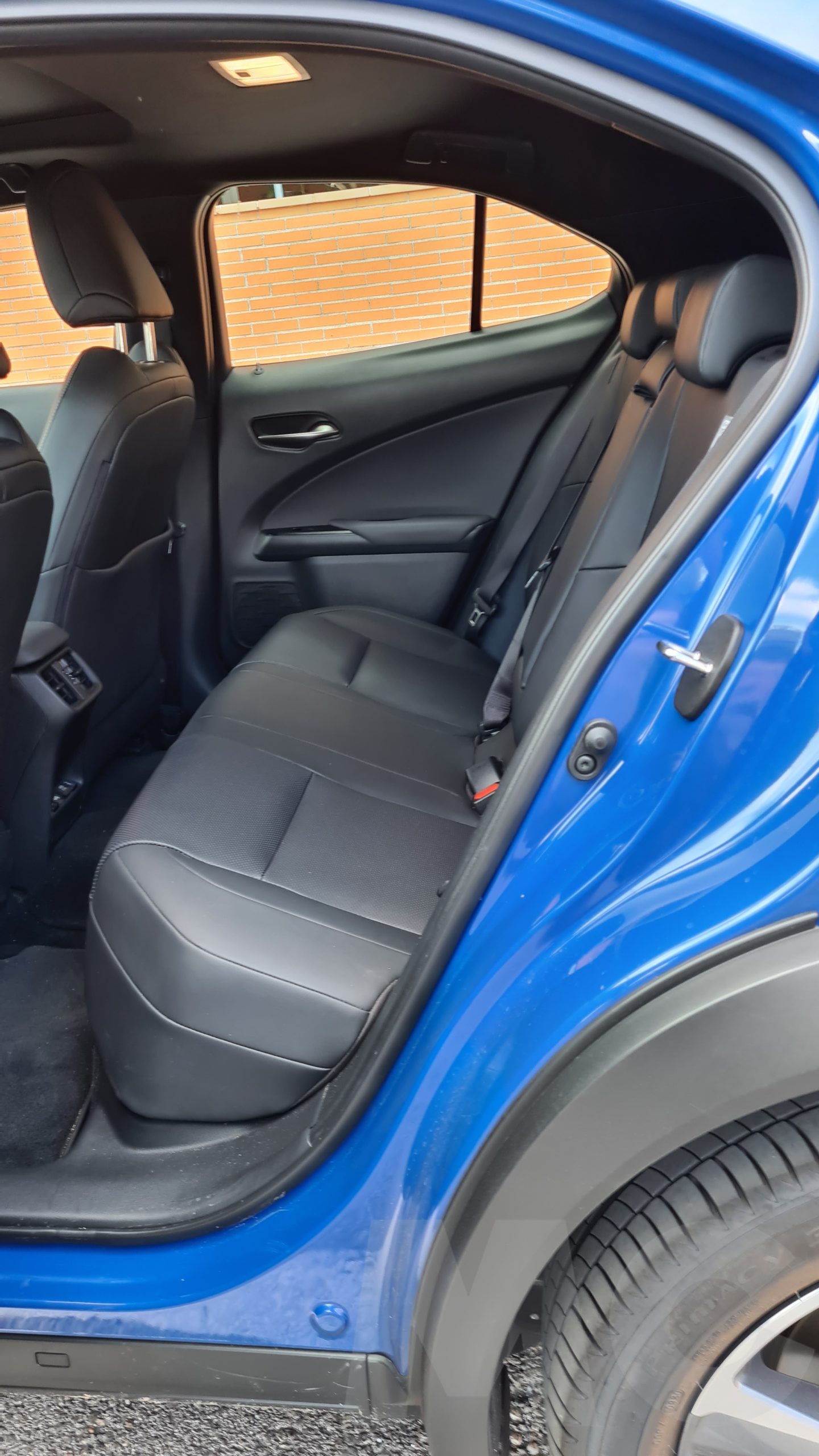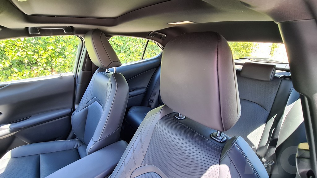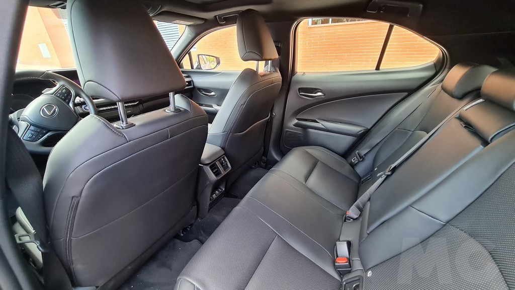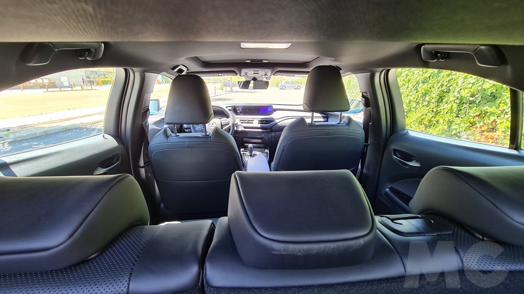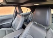 Las plazas traseras son más sacrificadas, al igual que en el UX híbrido, pero en el caso de este modelo algo más porque la altura hasta el techo es menor. Esto se debe a que las baterías son mucho más grandes que en un sistema híbrido y los ingenieros han tenido que colocarlas en parte bajo la banqueta trasera elevándola un poco. Al elevarse el suelo también hay que llevar las piernas más flexionadas que en el la otra versión de este modelo.