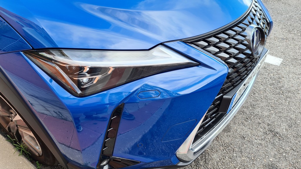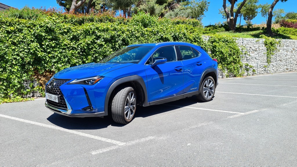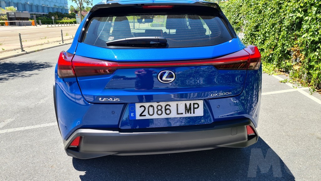 Como ya comentamos en la prueba del UX híbrido, las líneas de este modelo tienen todas las señas de identidad de los nuevos diseños de Lexus pero quizás con un aire más urbano, quizás por el tamaño del coche. Lo primero que llama la atención es la amplia parrilla delantera, que en el caso de este modelo en concreto no está destinada a refrigerar el motor. La parte inferior de la parrilla sí que tiene la función de refrigerar el aire destinado al enfriamiento de las baterías.