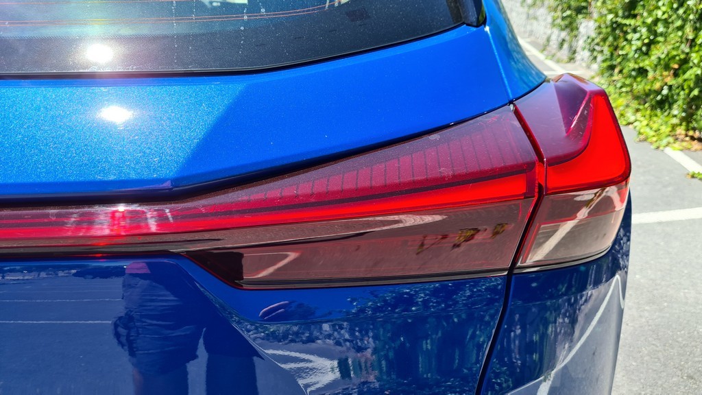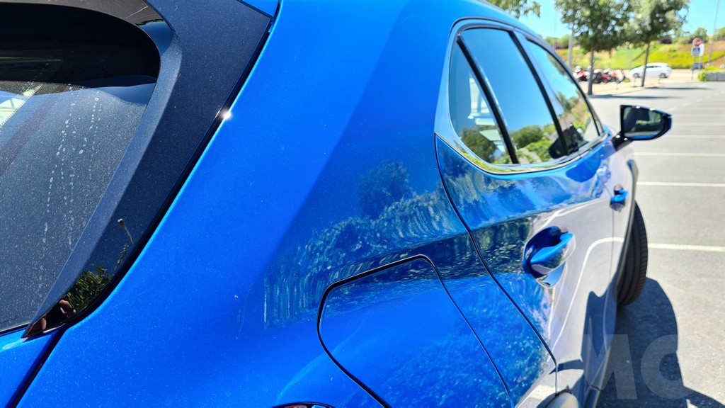 En este caso y para mejorar la aerodinámica del coche, muy importante para contener los consumos y aumentar la autonomía, esta parte inferior de la rejilla dispone de unas compuertas que se abren y cierran según la temperatura del sistema. Lo que si encontraremos es la portezuela de la toma de carga en la parte derecha del coche de forma rectangular, a diferencia de la portezuela redonda en la parte izquierda para el repostaje de combustible que encontramos en la versión híbrida.