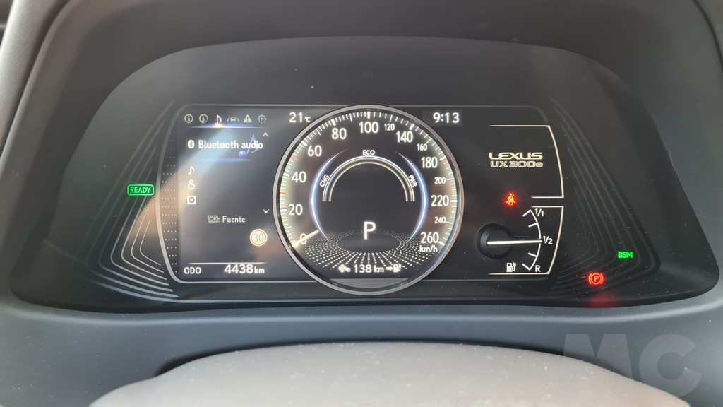 El interior del Lexus UX 300e también es prácticamente igual que la de su hermano híbrido. El renovado y modernizado diseño del interior se adapta muy bien a esta versión eléctrica además de los acabados de calidad y las terminaciones cuidadas que siempre distinguen a los modelos de esta marca. Curiosamente el panel de instrumentos ha cambiado y parece menos sofisticado que el de la versión híbrida que probamos ya que algunos indicadores como el nivel de carga son analógicos. Depende del acabado que se escoja.