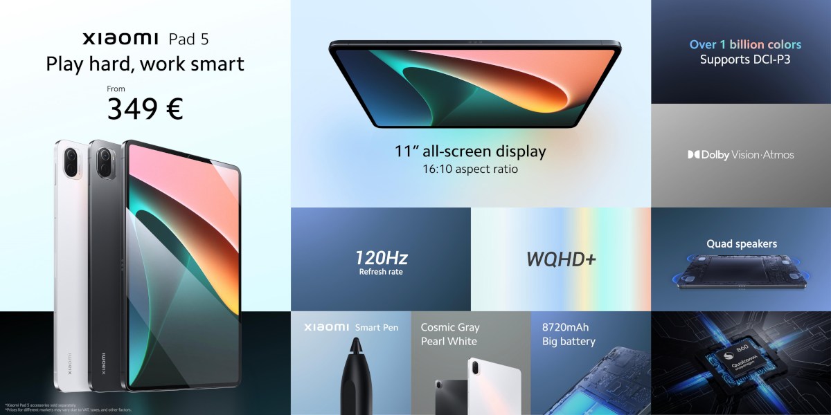 Xiaomi Pad 5 saldrá a la venta el próximo 23 de septiembre a un precio de 349 y 399 euros según el modelo, disponible también por colores en gris y blanco.