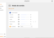 En la opción de modos de sonido podemos modificar el estéreo, el cristalizador, los graves y el volumen de los diálogos. Tiene también una opción de volumen inteligente que cambia automáticamente el volumen dependiendo de si es de día o de noche.  También cuenta con una opción de ecualizador que permite seleccionar modos ya predeterminados dependiendo del tipo de música que vayamos a escuchar y también juegos concretos como el Ciberpunk 2077 o el DOTA 2.