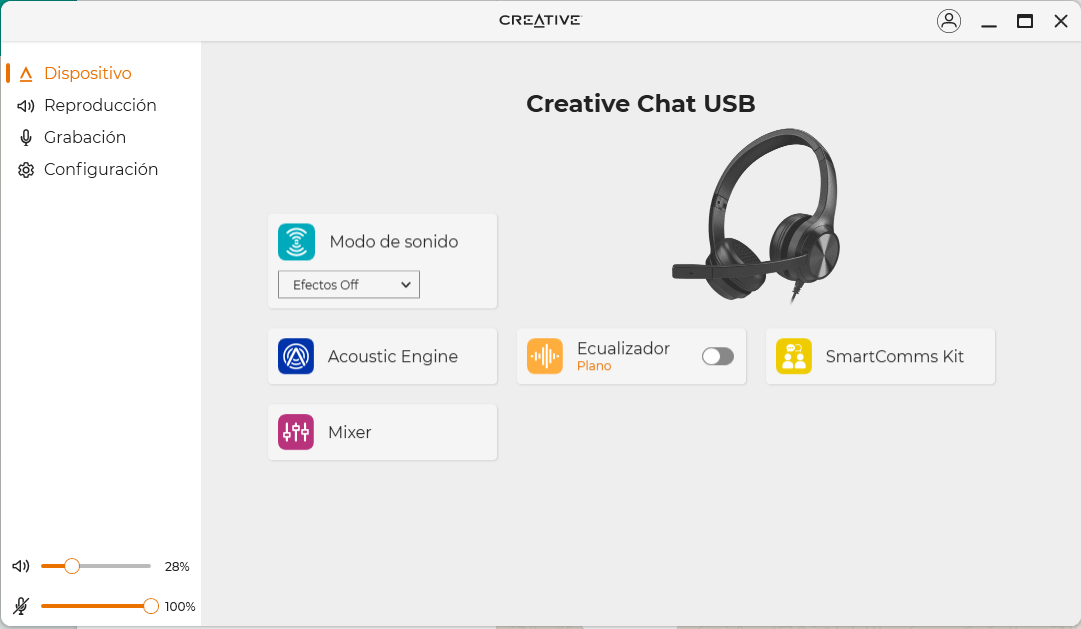 Para los usuarios de Windows 10 Creative pone a su disposición el software de SmartComms, una aplicación que permite modificar y controlar mejor las características los Creative Chat USB. La aplicación puede descargarse desde su web y nos permitirá modificar la ecualización de los Creative Chat USB.