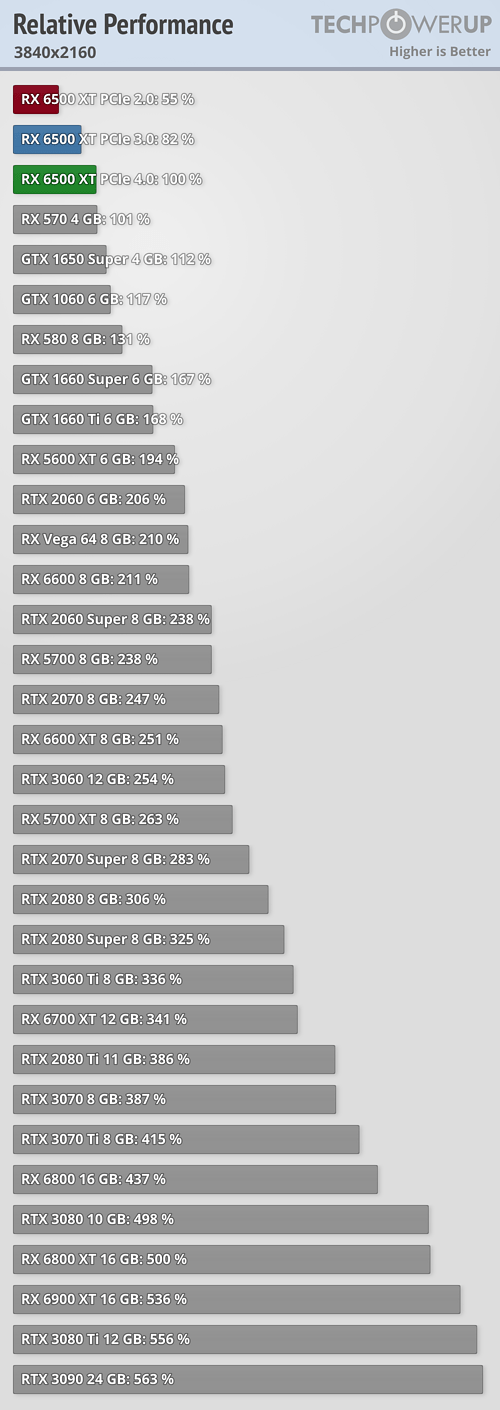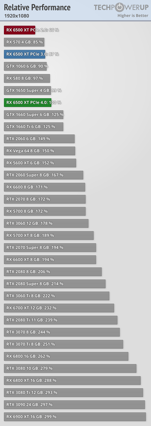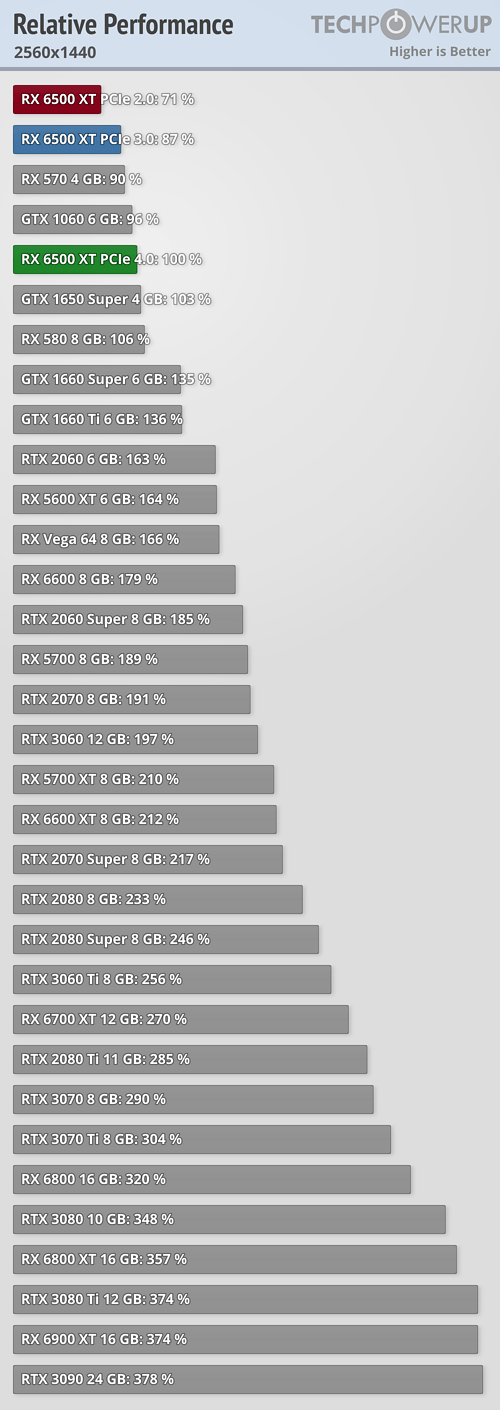 No hablo sin motivo. Es cierto que la Radeon RX 6500 XT utiliza una arquitectura más avanzada, y que cuenta con hardware dedicado a trazado de rayos, pero su rendimiento es inferior al de una Radeon RX 5500 XT de 4 GB (la diferencia es pequeña en 1080p, pero considerable en 1440p), tiene una carencia importante derivada del uso de una interfaz PCIE Gen4 x4 y viene además, sin decodificación por hardware de AV1.