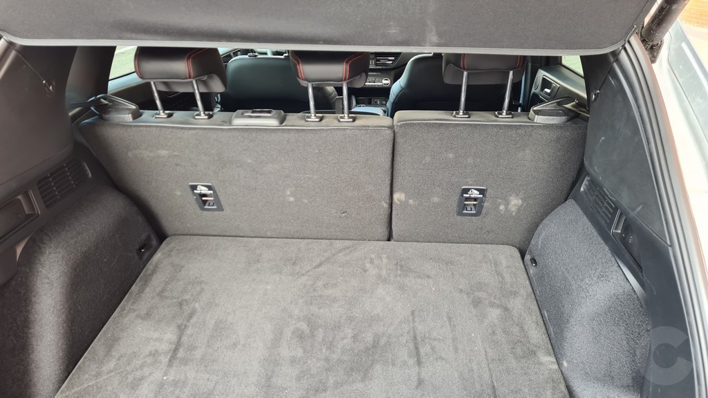 En la parte trasera los pasajeros disponen de dos salidas de aire y una toma USB para la carga de dispositivos. En lo que respecta al maletero, éste tiene una capacidad de 411 litros con la posibilidad de ampliarlo abatiendo los asientos hasta los 1.481 litros. Algo escasos pero justificados por la presencia de la batería. La superficie es regular con un tapizado robusto y agradable, aunque los pasos de rueda restan bastante espacio en los laterales. También dispone de una luz y la cortinilla se eleva con el portón para dejar un acceso más cómodo para la carga.