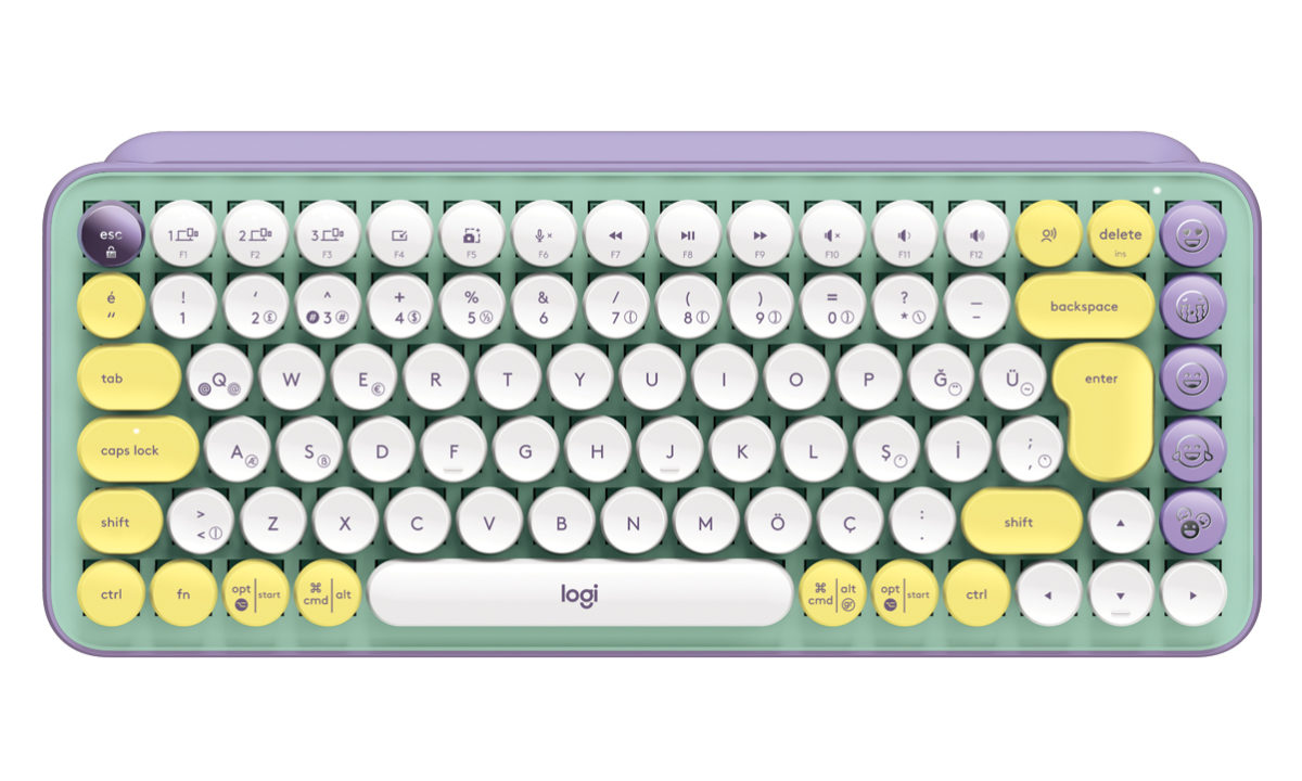 Comenzando en el mismo orden en el que los hemos mencionado, el Logitech POP Keys se presenta como un teclado mecánico de tamaño compacto TKL y estilo retro modernizado, con unos interruptores mecánicos y unas teclas redondeadas que recuerdan a las máquinas de escribir. Eso sí, sin renunciar a las mejoras actuales como los hasta 12 atajos y funciones adicionales (con diferentes combinaciones para la telca FN) para capturar la pantalla, silenciar el micrófono y comandos para facilitar las acciones más comunes del día a día.