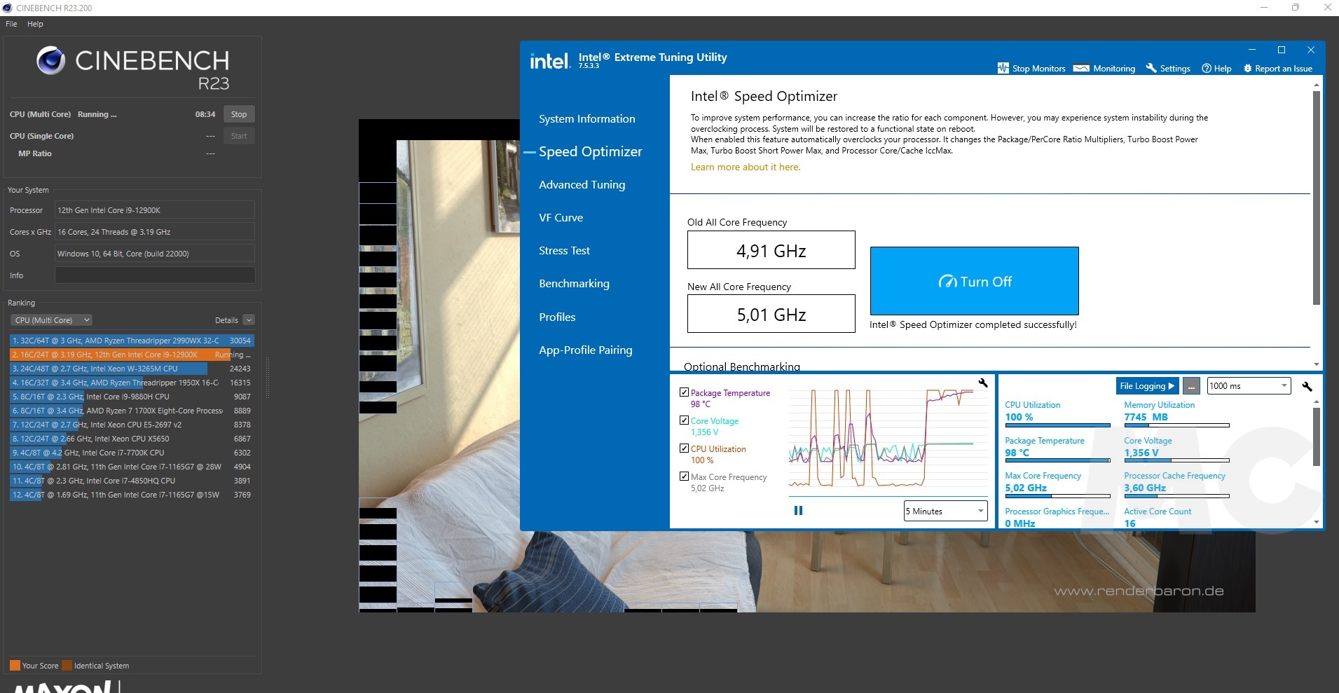 Para ponerlos al 100% de uso, será necesario utilizar pruebas específicas, como por ejemplo Cinebench R23. Dicha prueba es una de las mejores para medir la temperatura de un procesador tanto en monohilo como con una carga del 100%, y también nos permitirá obtener una estimación de su rendimiento.