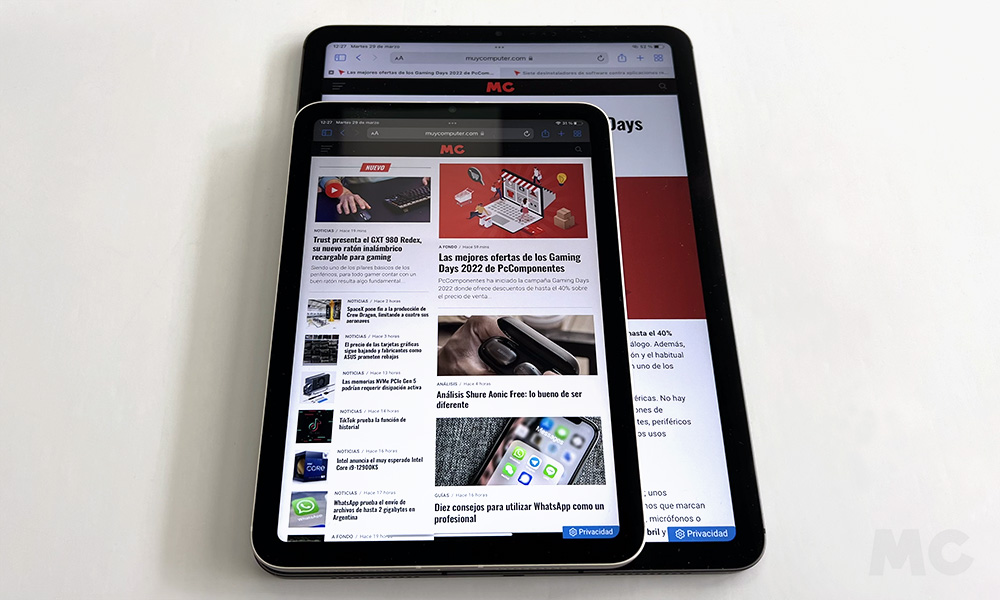 En las imágenes de arriba mostramos al iPad mini 2021 comparado con el iPad Air 2022. El formato es el mismo, aunque hay otras diferencias, tal como podéis leer en el análisis que publicamos del iPad mini de sexta generación.