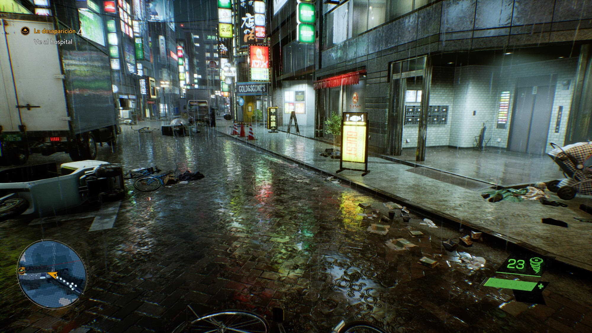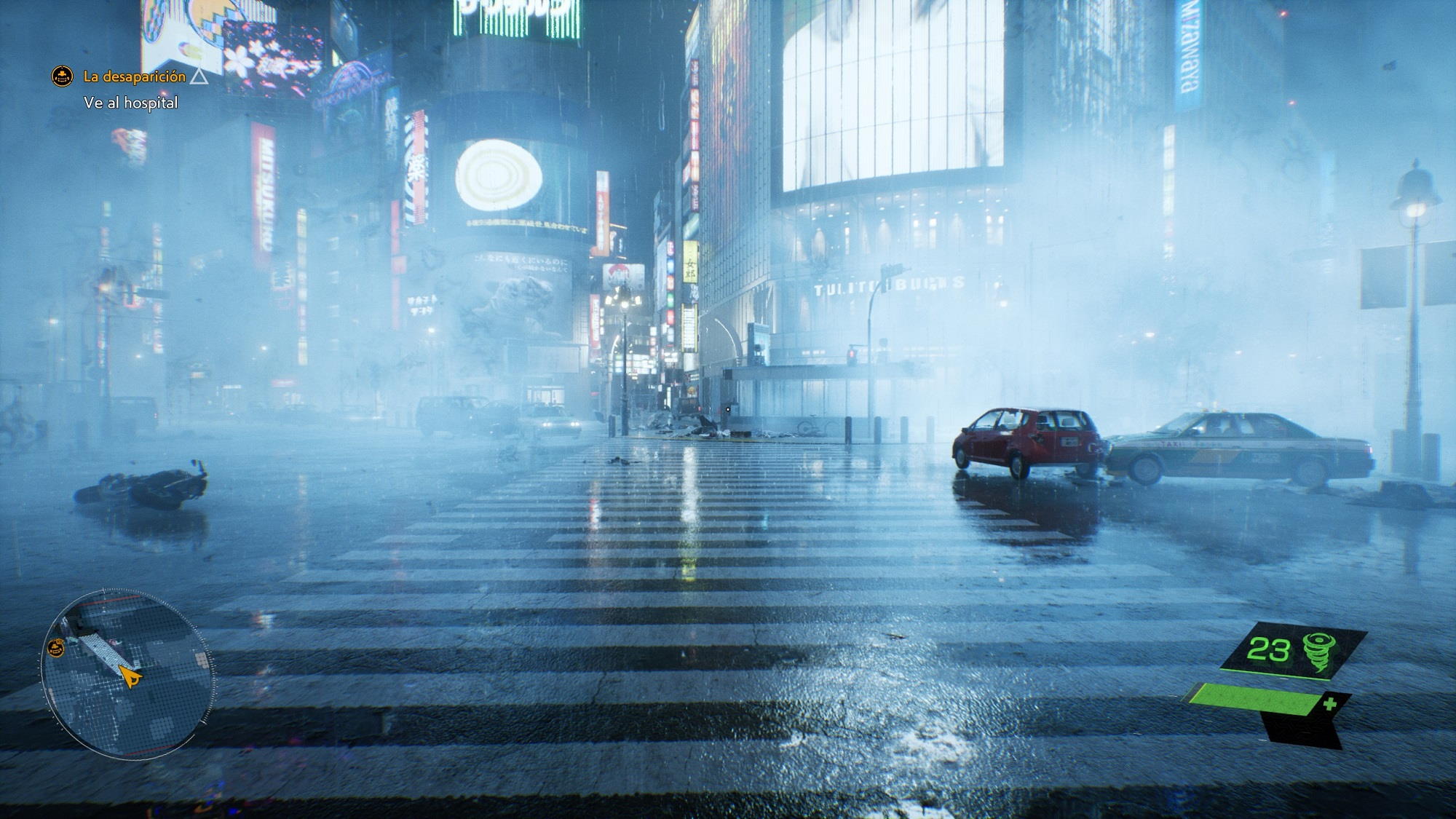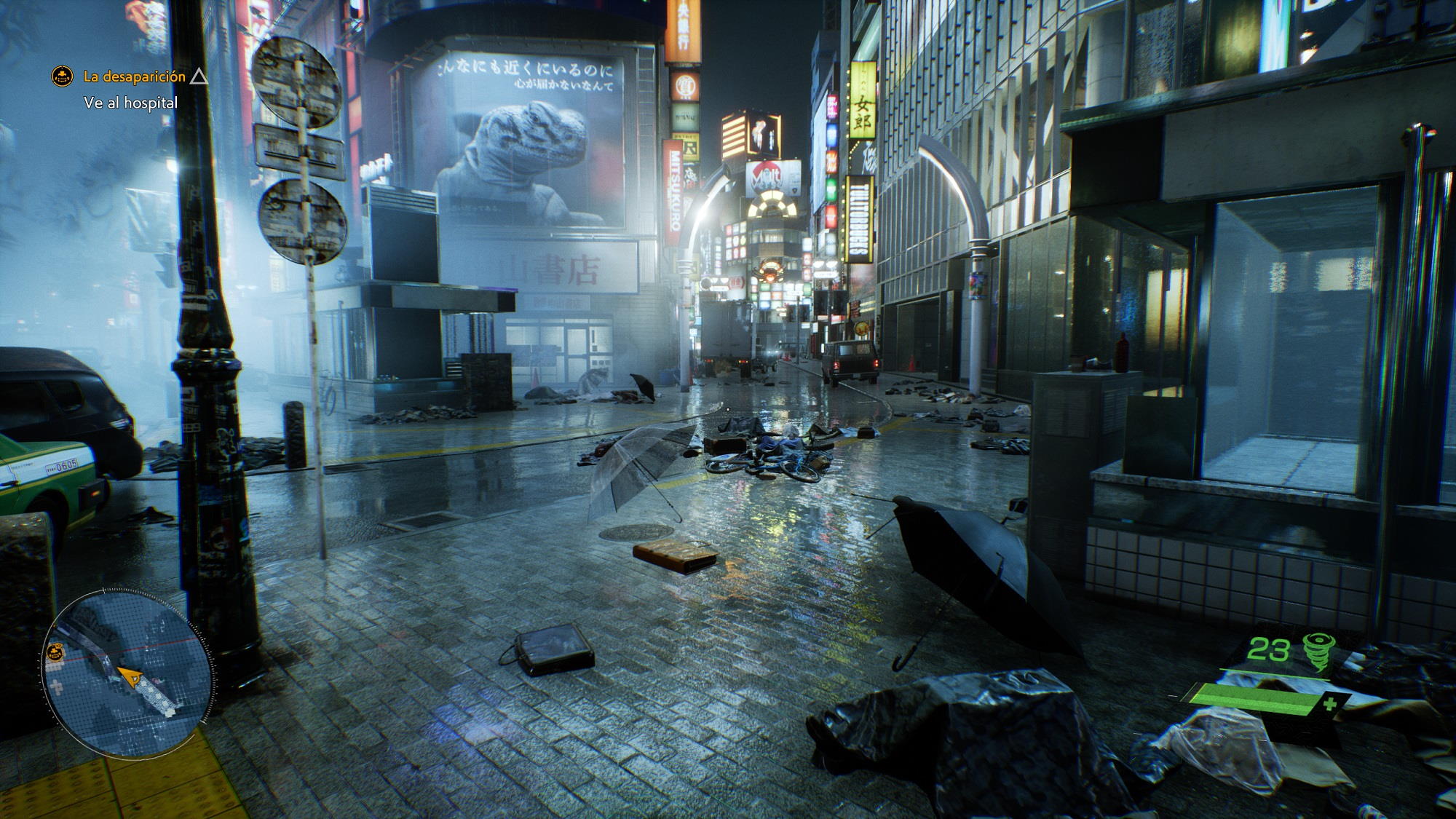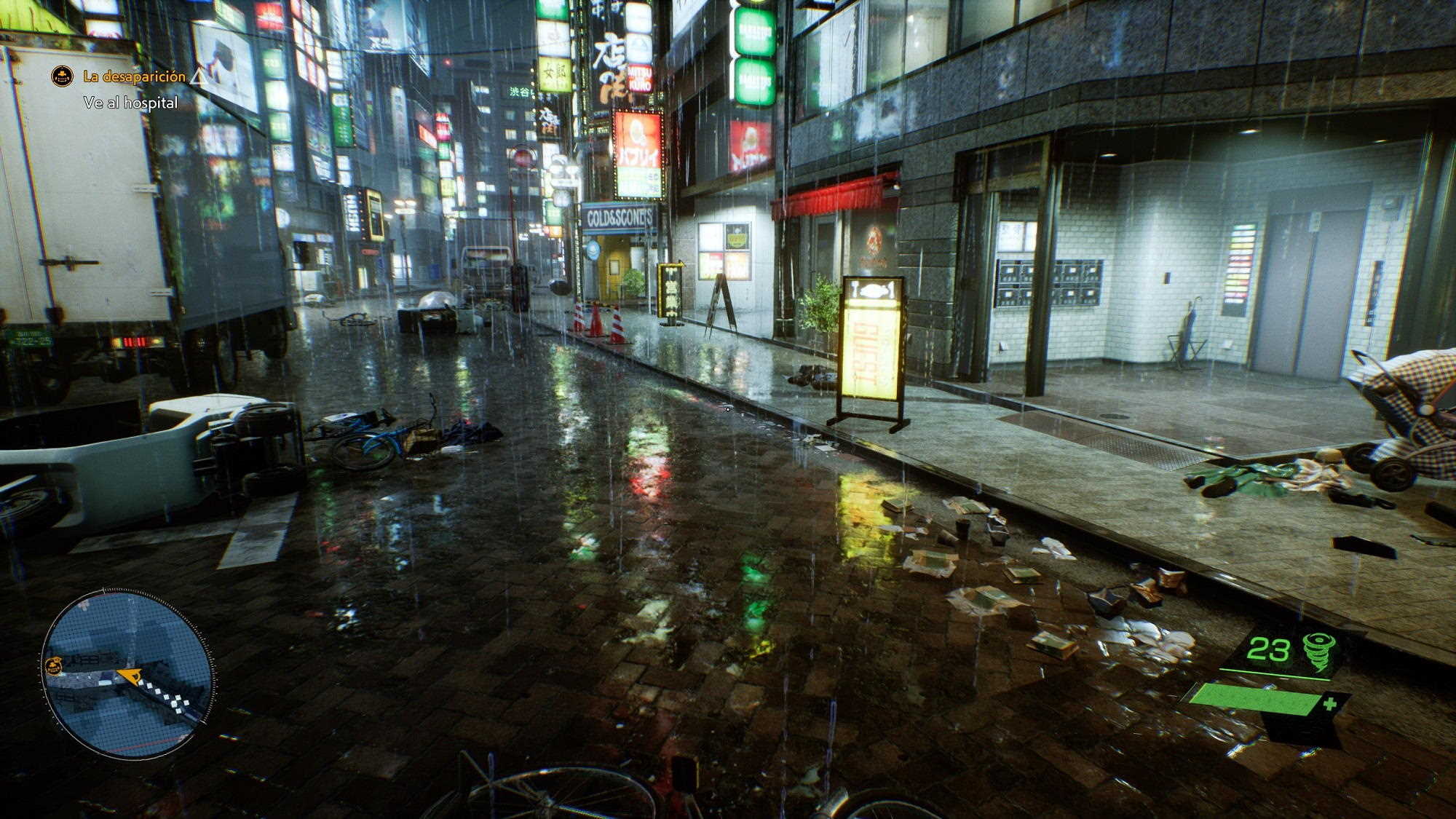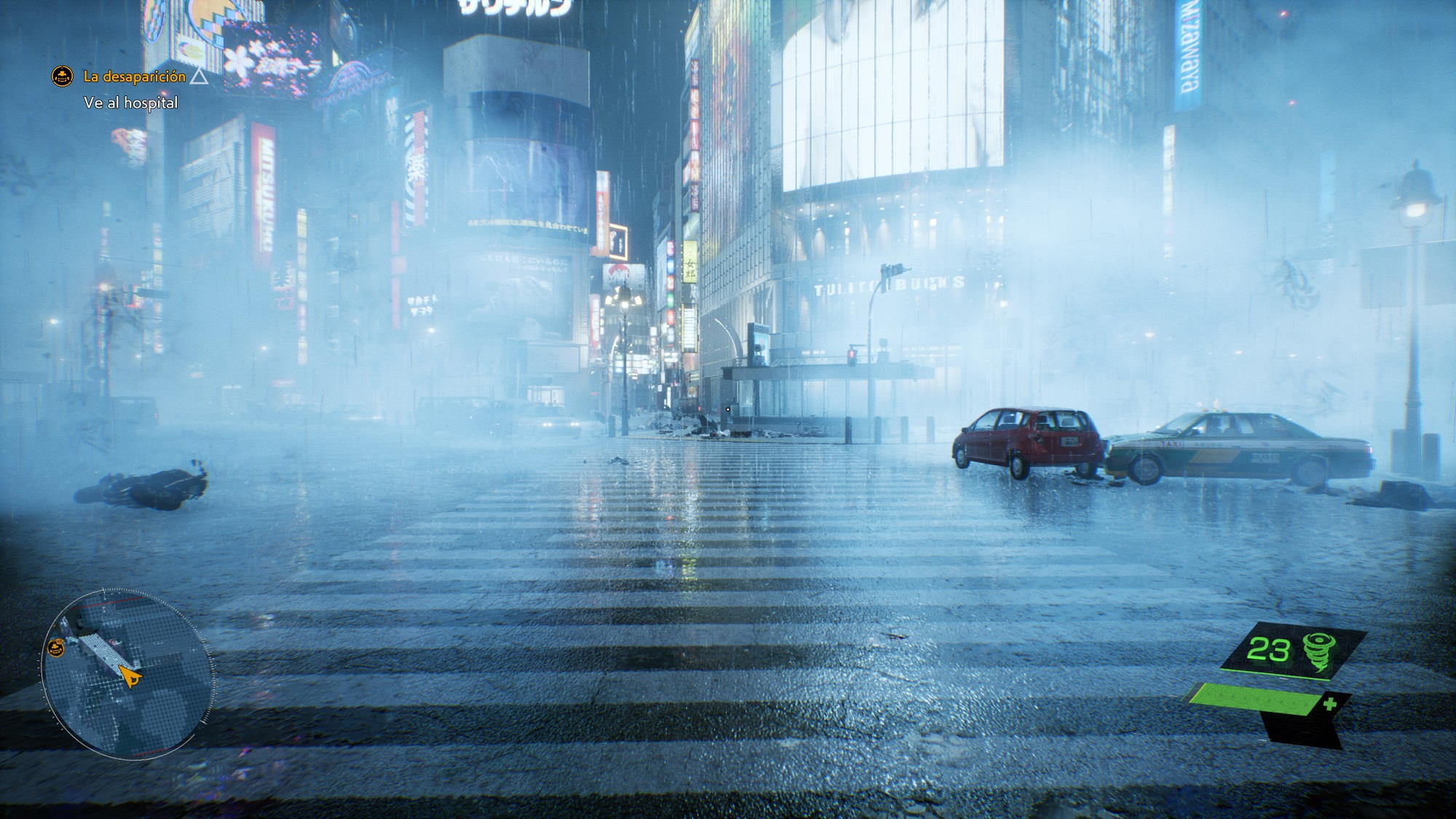 Desde el momento en el que empezamos a jugar nos encontramos con una recreación perfecta del famoso cruce de Shibuya, y esa primera escena es más que suficiente para darnos cuenta de que estamos ante un título de nueva generación que rompe, efectivamente, con las principales limitaciones que imponía la «old gen». Conforme vamos avanzando en el juego esa sensación de que estamos ante un juego «next gen» se acentúa, especialmente cuando podemos contemplar Tokio desde las alturas. La amplitud del escenario, y la calidad del mismo, son espectaculares.