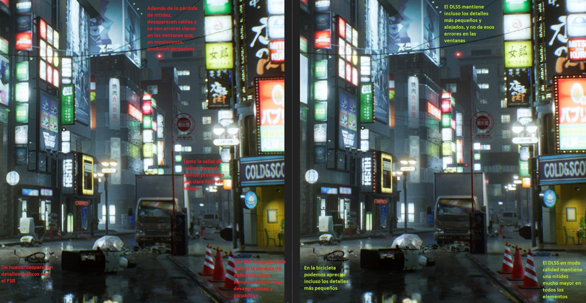 Reconstruyendo, y reescalando, Tokio: NVIDIA DLSS frente a AMD FSR