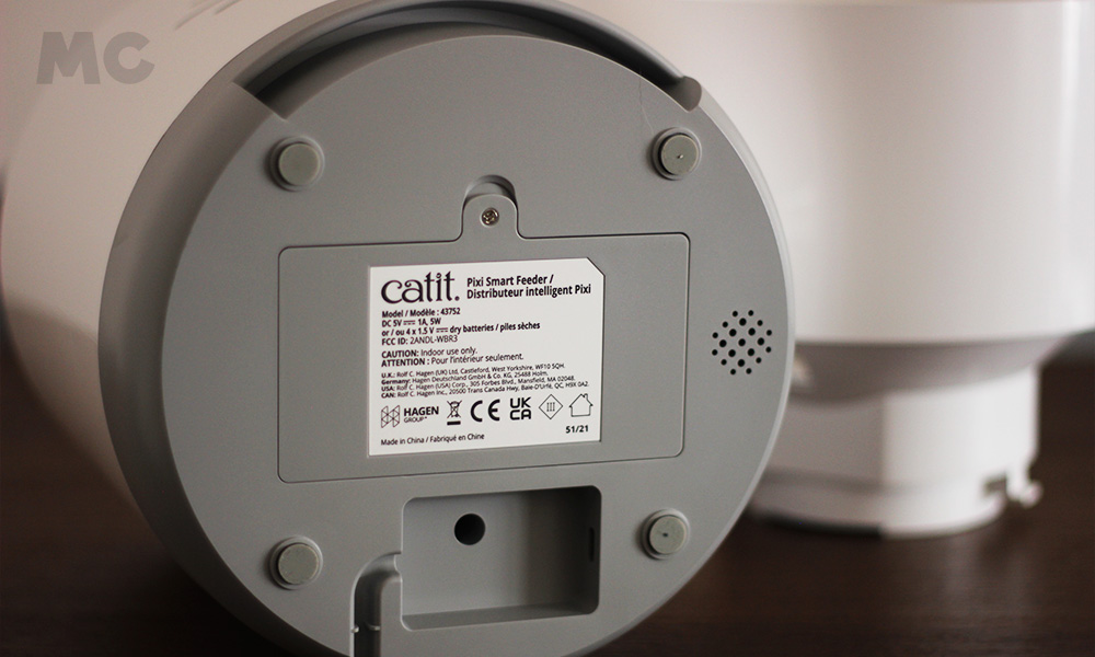 Un detalle muy importante que cabe destacar es que, por si te preocupa que el comedero pueda dejar de funcionar si se va la luz, cuenta con pilas de refuerzo en la parte posterior, que durarían unas 58 horas en caso de corte de energía.