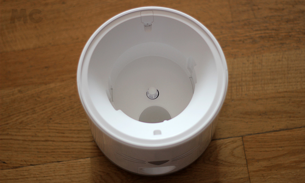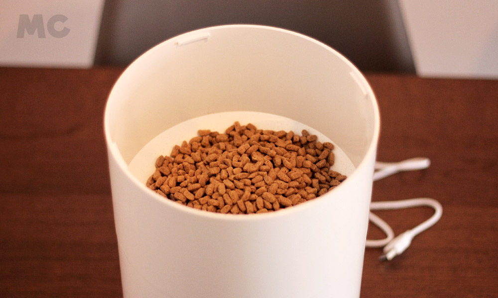 Empezaremos hablando del depósito. Contamos con una capacidad de 1,2kg, que va a ser suficiente para olvidarnos de llenar el depósito durante algunas semanas (tiempo que variará en función de lo que coma tu gato). El anillo que cierra el depósito es hermético, lo que mantiene el pienso fresco y crujiente durante más tiempo, además incluye una almohadilla deshumidificante en la tapa para prevenir el moho (se cambia cada 30 días).