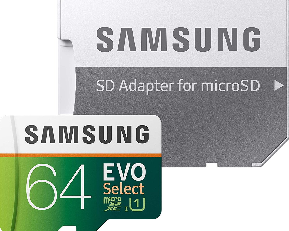 Samsung EVO Select. Tarjetas MicroSDXC UHS-I, Clase 10, U3 de hasta 100 MB/s. Son resistentes a golpes, al agua, vibraciones y prueba de rayos X. Se vende con adaptador SD en las siguientes versiones y precios: