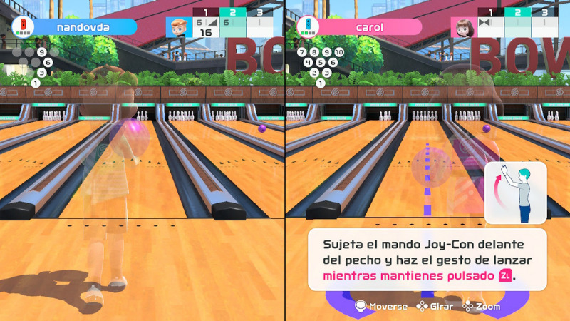 Debo de admitir, los bolos se han coronado como uno de mis juegos favoritos. En este juego se pueden juntar hasta cuatro personas, aunque será necesario contar con la cantidad de mandos suficientes para que todos puedan jugar. Es muy fácil de jugar, cómo casi todos las disciplinas que se nos presentan. Para poder hacerlo debemos mover el mando como si se tratara de una bola de bolos real y realizar el mismo movimiento que haríamos en la vida real.