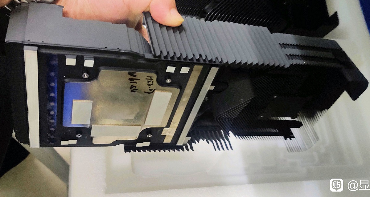 Esta filtración también nos ha permitido confirmar la presencia del mismo sistema de doble ventilador que vimos en las GeForce RTX 30, y que tan buenos resultados ha dado a NVIDIA. Esos ventiladores están colocados en posiciones opuestas para realizar de forma diferenciada la tarea de introducir y sacar aire del interior de la tarjeta gráfica. En la imagen adjunta podéis ver también los embellecedores con el distintivo «RTX 4090 Ti», un detalle que no hace más que reforzar la credibilidad de esta filtración.