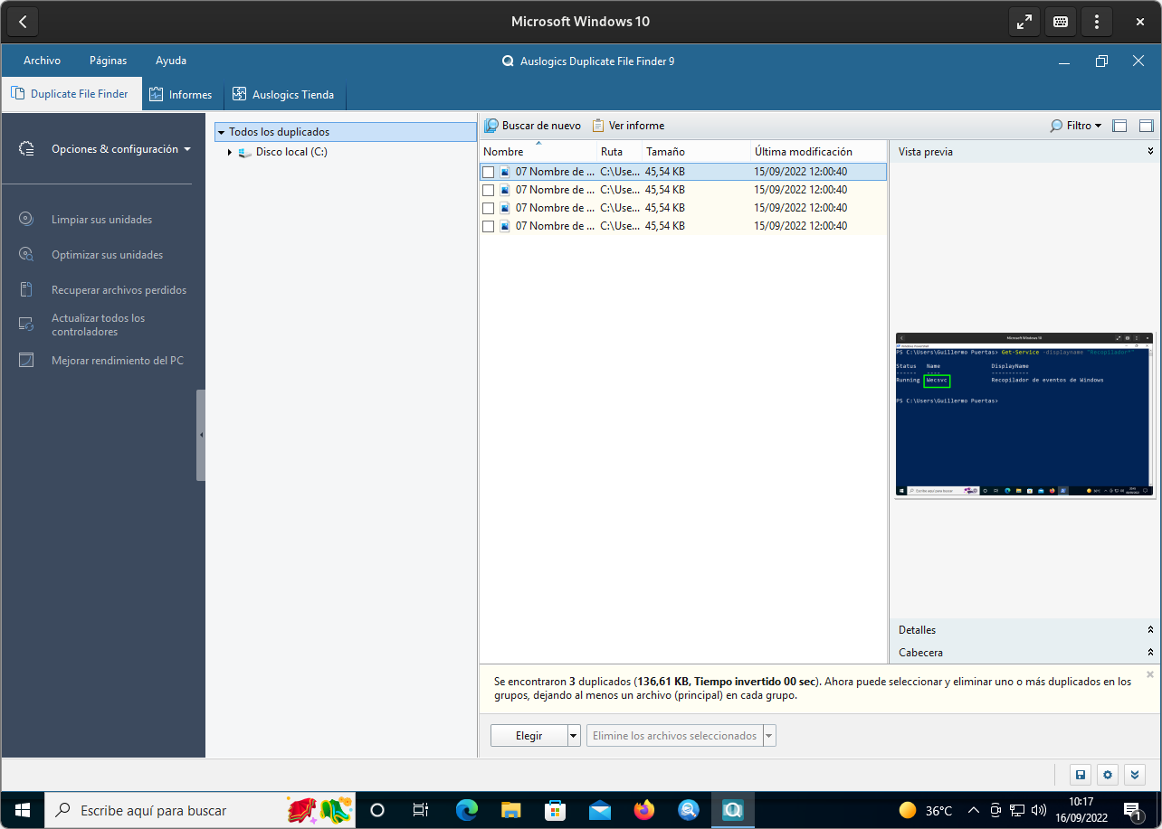 Tras realizar la búsqueda, el usuario puede ver los ficheros que se llaman igual para proceder a borrar los duplicados que no le interesa mantener, pero antes es mejor que se fije en el tamaño y la ubicación para asegurarse de que elimina los correctos.