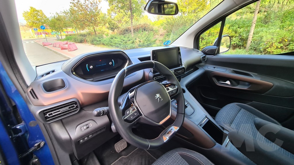 Como en el caso de la Rifter que probamos los acabados dan una impresión mixta entre los plásticos duros más propios de una furgoneta en el salpicadero o el túnel central para aportar más resistencia al uso con otros materiales más nobles como los del volante o la pantalla del sistema de información y entretenimiento. Como en la Rifter el volante es de tamaño reducido como en otros modelos de la marca para que podamos ver por encima del mismo la pantalla que hace las funciones de los indicadores.