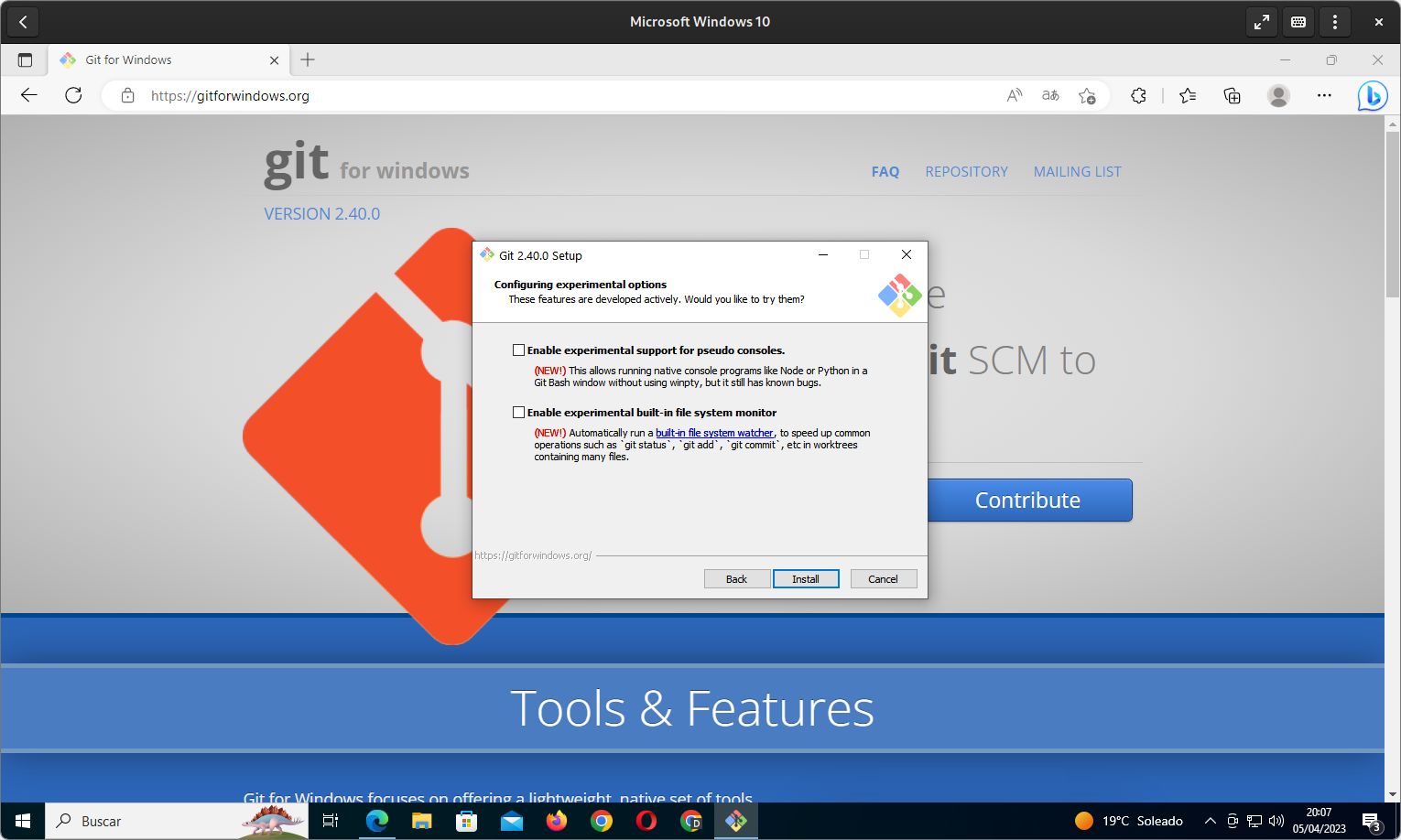 Otra vía de poner usar Bash en Windows es a través de Git for Windows, el cual suministra un entorno de MING64 con acceso al mencionado intérprete de comandos. Además de Git Bash, el instalador también proporciona en su recorrido la posibilidad de usar OpenSSH, que viene a ser la conocida herramienta de acceso remoto desarrollada principalmente por OpenBSD, y la biblioteca criptográfica OpenSSL, la cual es muy empleada en Linux.