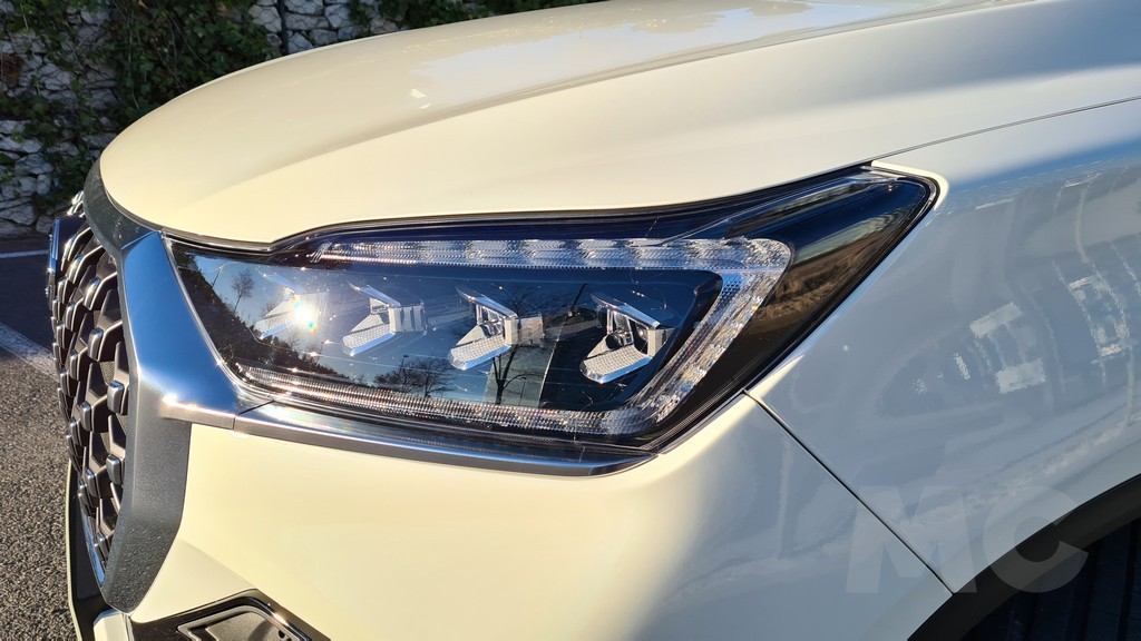 Lo que más llama la atención del exterior es quizás la parte delantera donde la amplia parrilla encuadrada en una moldura de color metálico que se ve arropada por los faros en los laterales que lucen unas modernas ópticas led. Justo debajo de la parrilla encontramos una pequeña toma de aire que también se extiende a los laterales donde se han colocado las luces auxiliares con unas molduras de plásticop negro que envuelven al parachoques. Bajo este encontramos una nueva toma de aire rematada con un breve spoiler.
