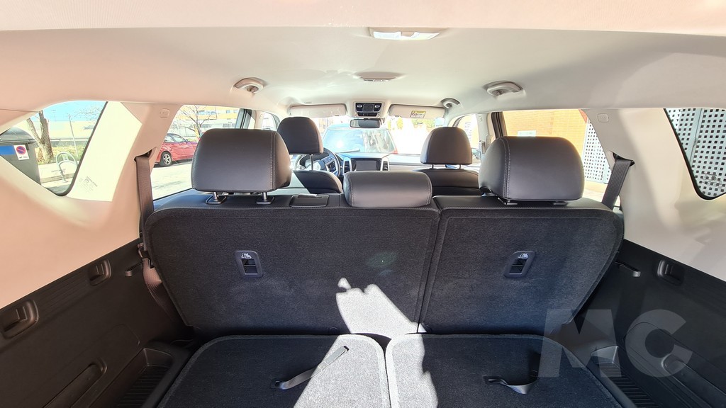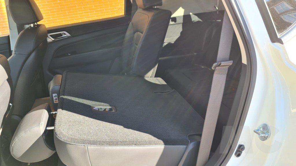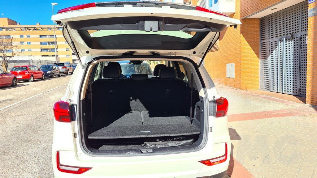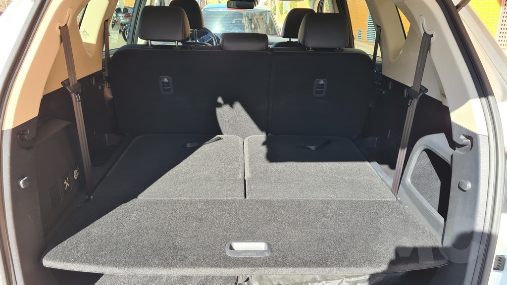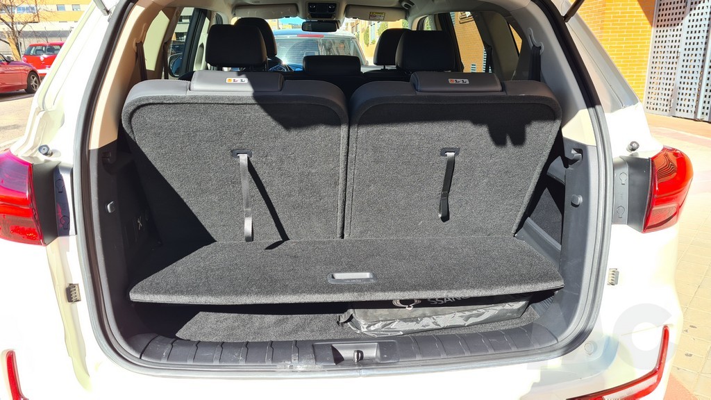 El maletero del Rexton es grande, alcanza los 641 litros cuando la tercera fila de asientos se abate contra el suelo. En cuanto a la segunda fila como hemos visto el respaldo es sencillo de abatir con el sistema que hemos mencionado cuando necesitemos la máxima capacidad de carga y de esta forma podemos alcanzar los 1806 litros nada menos. Cuando están las tres filas disponibles el espacio del maletero es de 236 litros, bastante digno para la configuración de siete plazas. Hay una bandeja que permite establecer varios espacios de carga o nivelar la superficie de carga del maletero cuando abatimos los asientos.