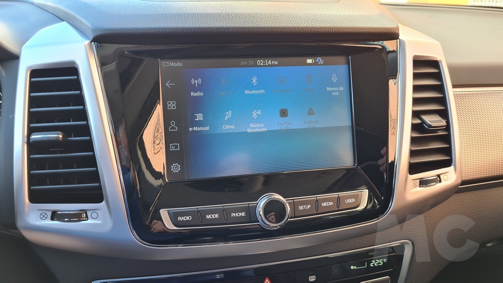 La pantalla del sistema multimedia de ocho pulgadas no tiene una calidad demasiado alta aunque los menús son visibles e intuitivos. La elección de colores y el mal comportamiento cuando se refleja la luz directa son dos inconvenientes que se deberían mejorar. La pantalla está rodeada de un marco de plástico brillante que ahí sí muestra las huellas cuando lo rozamos para usar los controles táctiles de la pantalla. Una fila de botones físicos bajo la misma facilita el acceso directo a distintas funcionalidades del sistema como fuentes de audio o la configuración.