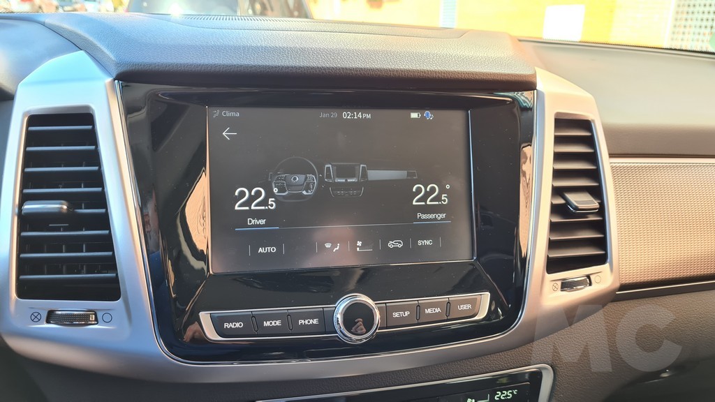 Debajo del bloque de la pantalla del sistema de información y entretenimiento Ssangyong ha colocado, con acierto, los botones para controlar el sistema de climatización del vehículo. El volante es grande y los controles de los que dispone permite acceder a muchas funciones con botones y selectores físicos sencillos de accionar pero que al tener la misma forma hay que acostumbrarse para no tener que mirar para escoger la función que estamos buscando.