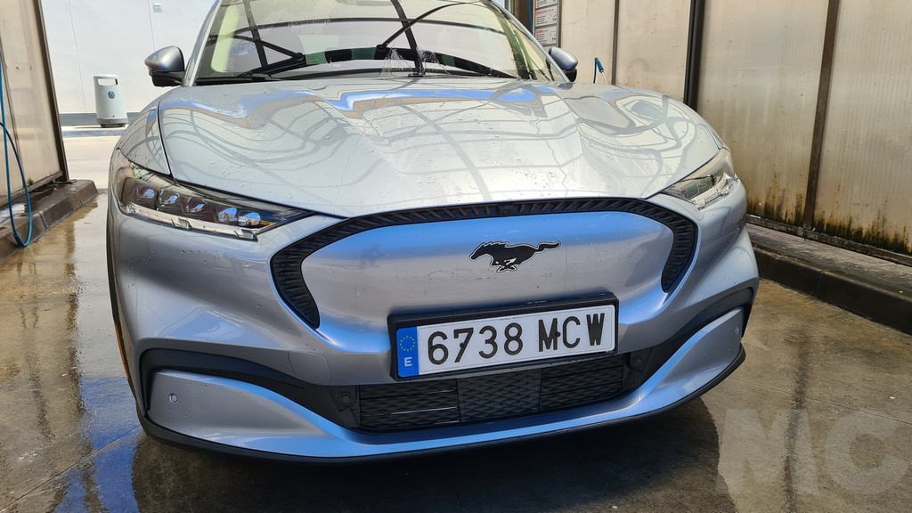 Al primer vistazo el Mach-E no esconde que quiere ofrecer una estética deportiva que esté acorde con el pedigrí que le proporciona e ilustre nombre de raza de caballo con el que se butizó uno de los deportivos más míticos de los años 60, responsable en parte de una democratización de lo deportivos que se vivió en el mercado norteamericano en esas fechas como reacción a los exclusivos deportivos del viejo continente. En el frontal de este modelo el morro alargado y los grandes grupos ópticos lo emparientan inmediatamente con la estética del Mustang en su versión Muscle car o Pony Car que sigue vendiendo Ford y que también hemos probado. Y por supuesto la imagen del caballo galopando en el centro.