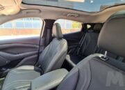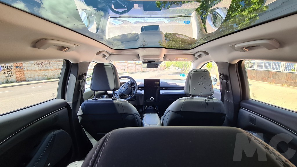 El techo panorámico ocupa mucho espacio sobre nuestras cabezas. No puede abrirse y tampoco dispone de cortinilla pero el tratamiento contra los rayos del sol hace que el habitáculo no se caliente en exceso incluso si lo dejamos durante largo tiempo a la luz del día. Es otra de las señas de identidad del coche y llena de luz el habitáculo dando una impresión de mayor amplitud a un espacio ya de por si bastante grande. Los asientos delanteros son muy cómodos, se encuentran en una posición elevada con muy buena visibilidad de la carretera y tienen multitud de opciones de configuración.