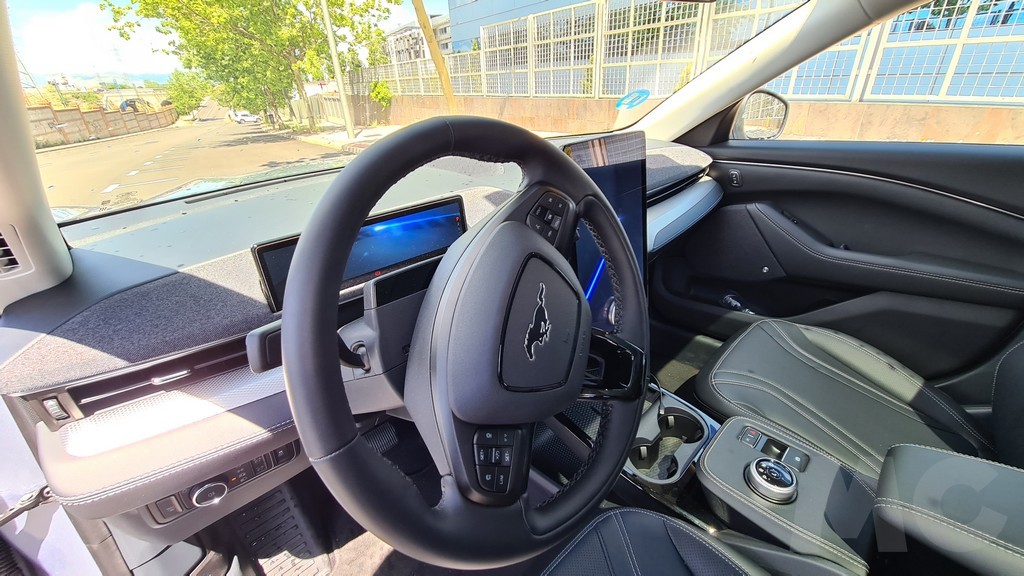 Antes de comentar las impresiones al volante hay que reseñar que el modelo que probamos es un Mustang Mach-E con tracción trasera y 294 caballos con la batería de 99 KWh. Hay modelos más asequibles con una batería de 76 KWh y otros superiores de tracción total y potencias de 351 y 487 caballos con lo que la oferta de variantes de tracción, potencia y autonomía es bastante amplia para este modelo de Ford. Sobre el papel esta variante es capaz de acelerar de 0 a 100 kilómetros por hora en 7 segundos y de circular hasta 600 kilómetros con una carga de la batería.
