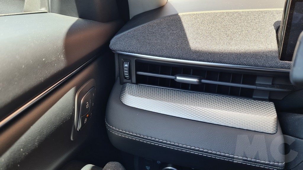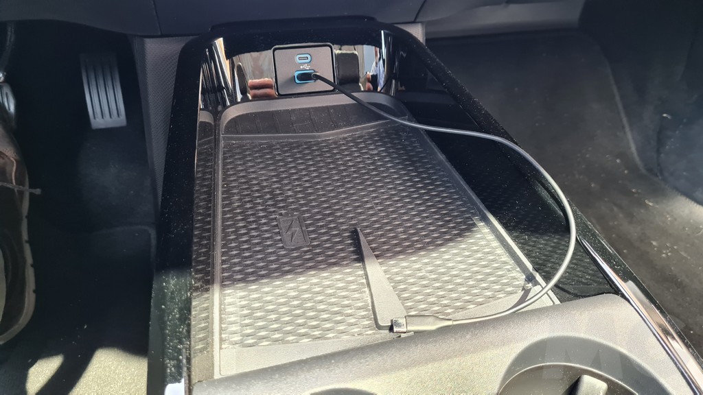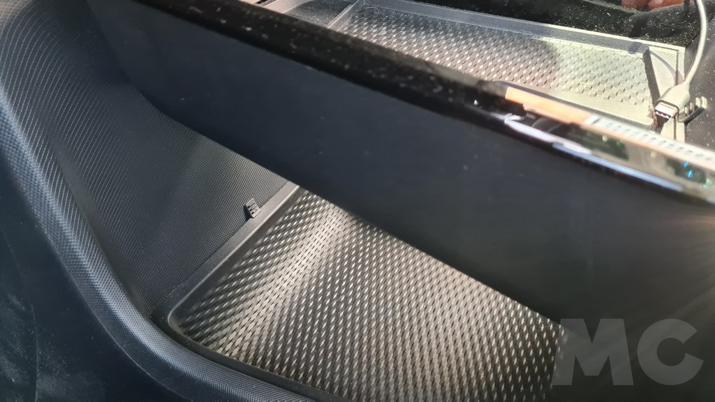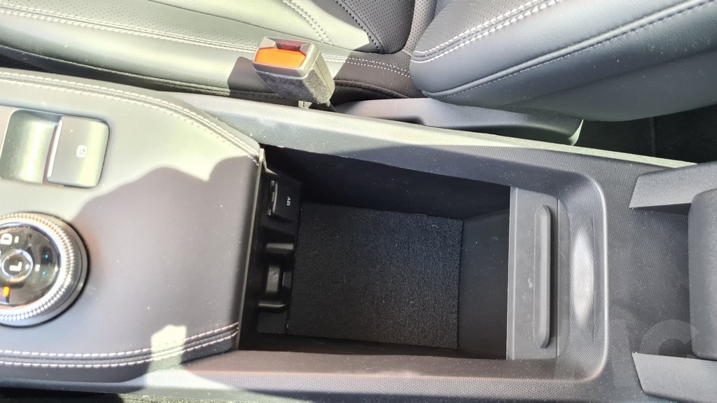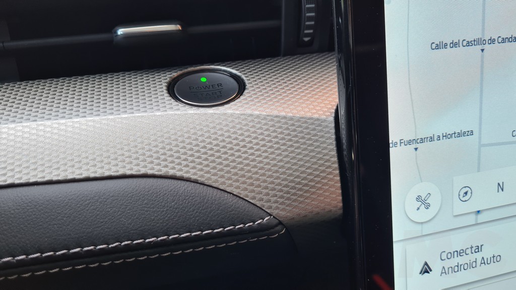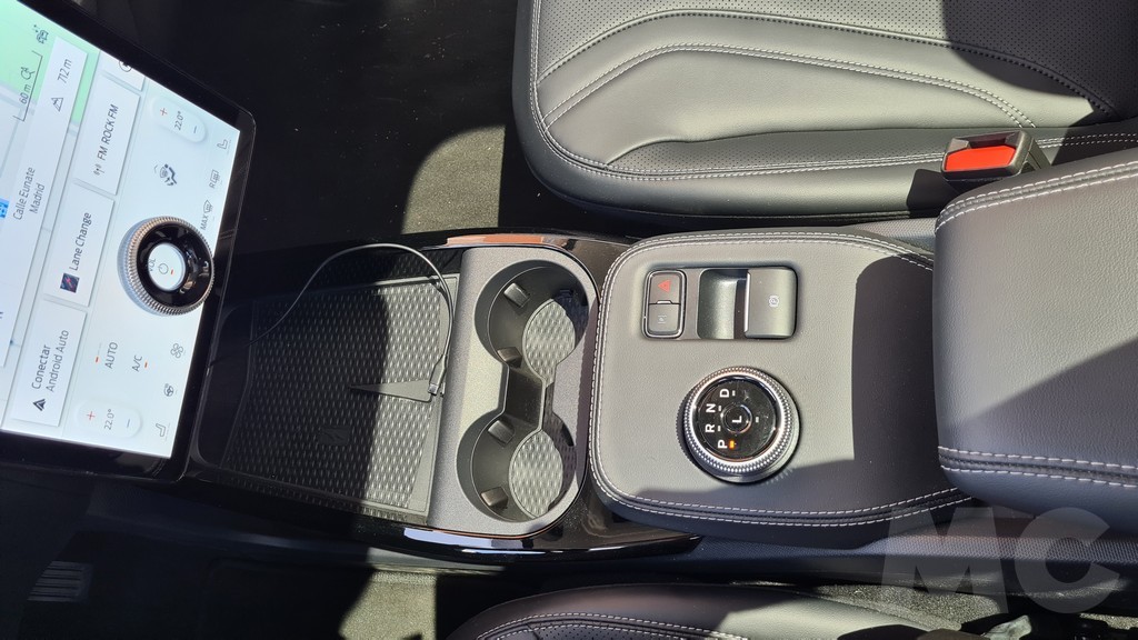 La visibilidad de esta pantalla es excelente aunque falta algo de personalización siempre tendremos a mano la información más importante mientras que el resto la podemos visualizar en la imponente pantalla principal. El resto del salpicadero es de diseño lineal y se ha tapizado en su parte superior con un material mullido con tacto de tela muy agradable. Encontramos muchos huecos portaobjetos, incluido el que se encuentra oculto bajo la consola donde se encuentra el selector del cambio y otro hueco más adelante bajo el salpicadero en el que podemos dejar el móvil y cargarlo de forma inalámbrica o conectarlo a las entradas USB.