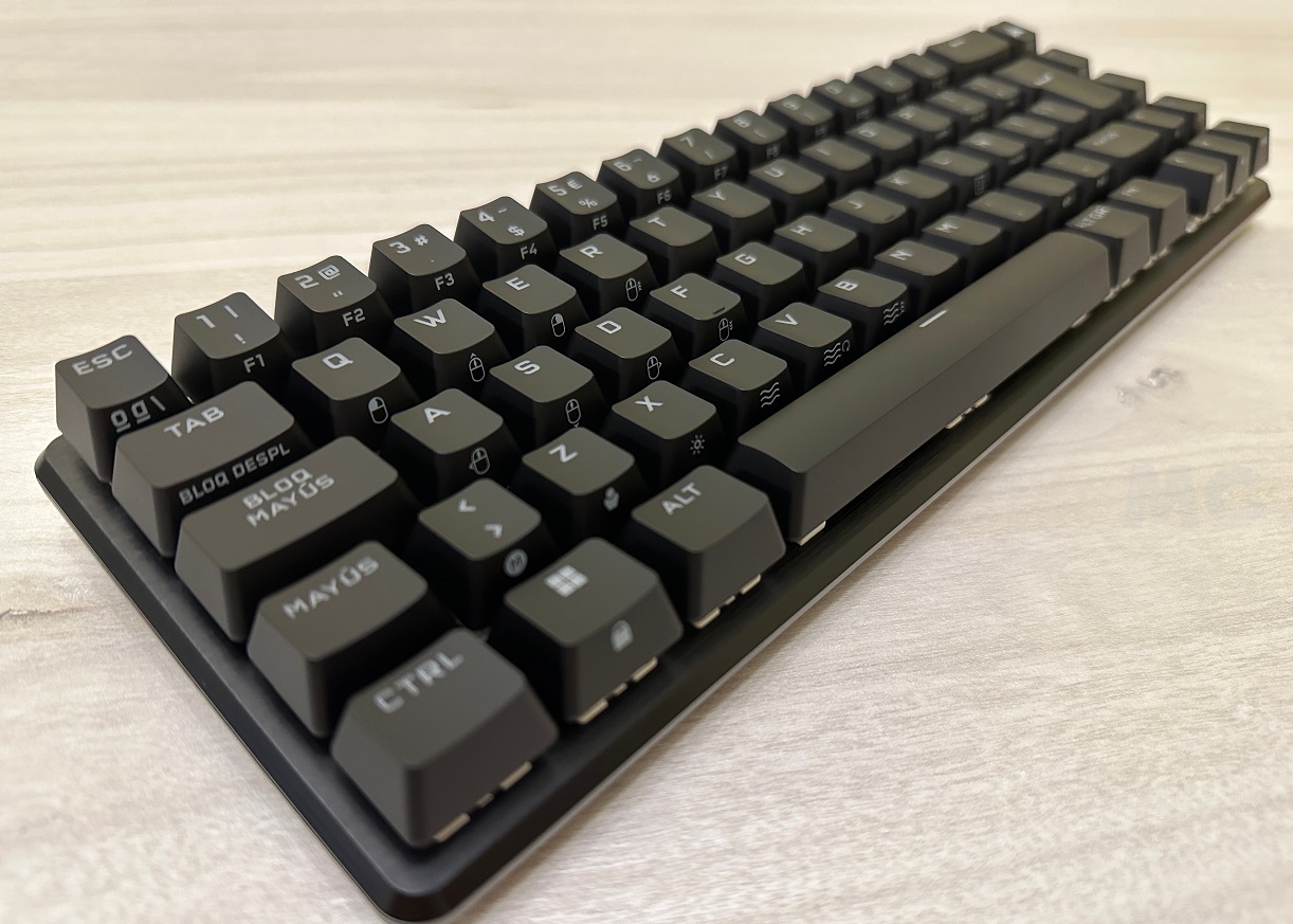 Obvia decir que es un objetivo complicado porque, al final, cualquier teclado depende a nivel funcional de la cantidad total de teclas que pueda montar, y esto está directamente relacionado con el espacio disponible. Corsair ha logrado resolver este desafío con las funciones secundarias integradas en cada tecla, algo que ya vimos en el Corsair K65 RGB Mini, pero también ha introducido mejoras importantes que lo diferencian claramente de dicho modelo, y que lo colocan en una posición superior.