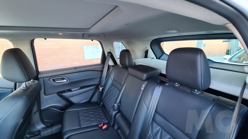 La tercera fila de asientos, como es habitual en este tipo de SUV y como sucedía con el X-Trail de la generación anterior, son pequeños y de difícil acceso abatiendo los respaldos de las plazas externas de la segunda fila. Aún así son plazas que pueden servir en un caso excepcional en el que tengamos que llevar niños o personas de muy baja estatura. Cuando no se utilizan estas plazas pueden plegarse en el suelo del maletero para dejar un piso uniforme para la carga.