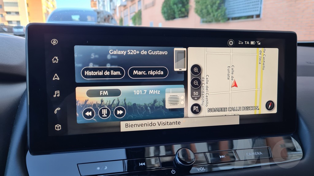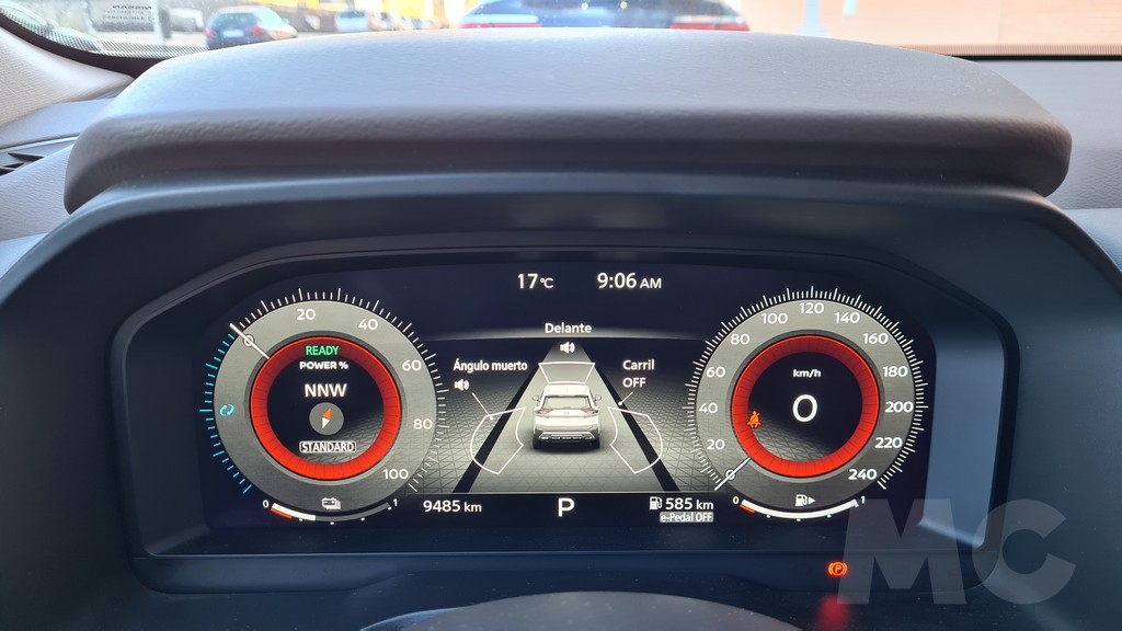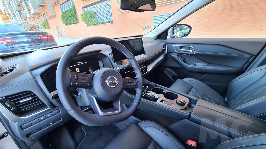 En realidad el diseño del salpicadero es muy parecido al del Nissan Qashqai de nueva generación que también hemos probado. Una de las características que más nos ha gustado de ambos es que no se ha renunciado a la colocación de botones y controles físicos para dar más protagonismo a la gestión desde la pantalla táctil por lo que a muchas de las funciones se accede de forma más cómoda y directa. Nos gusta algo menos que para muchas de las superficies y concretamente para algunos de los botones se haya elegido el acabado negro piano brillante que atrae las huellas y el polvo y es difícil mantener limpio.