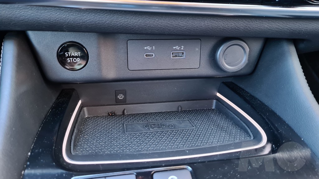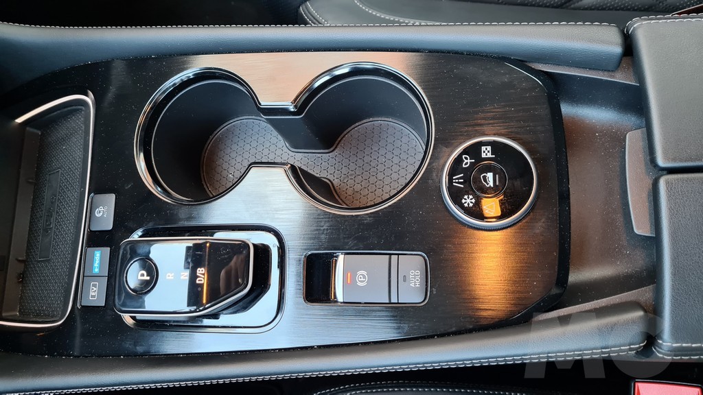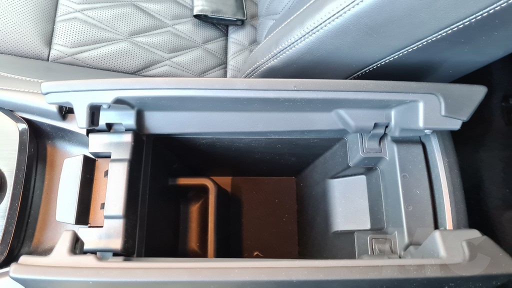Otro punto de diferencia importante en el diseño del interior es el de la consola central que en esta nueva generación es más ancha y ya no tiene el diseño «sinuoso» de la anterior sino que es más plana, dejando una sensación de espacio más grande entre los dos asientos delanteros. La consola se eleva bastante y tiene dos partes, una con acabado negro piano con posavasos, selector de cambio, selector de modo de tracción y otros conectores además del un hueco portaobjetos para el móvil con carga inalámbrica y un reposabrazos tapizado en la parte posterior que puede abrirse y da acceso a un espacio de almacenamiento.ç