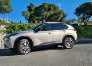 Observando el lateral vemos que se han agregado relieves para dinamizar el perfil del coche con unos «hombros» más anchos y protuberancias en las puertas. El techo es más horizontal que otros SUV con aspiraciones más deportivas pero las líneas de la parte de las ventanillas y los pilares se estrechan para dar una imagen más dinámica combinándose con elementos en negro y las propias lunas tintadas que se encuentran en la parte trasera del coche para proteger a los pasajeros de la segunda fila de asientos.