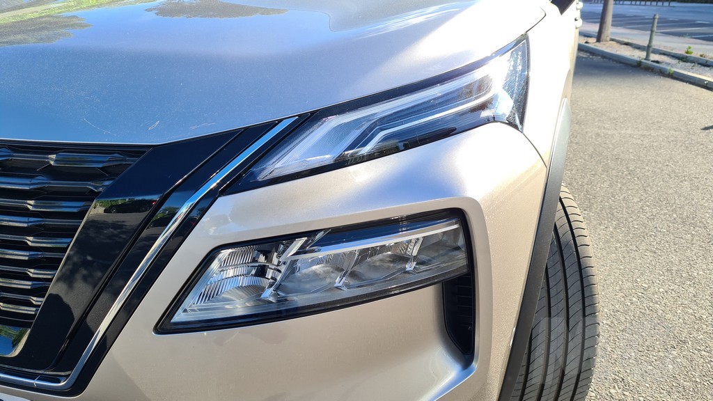 Observando el nuevo X-Trail vemos que se mantiene el principio de diseño de la parrilla del radiador con forma trapezoidal aunque en este caso es totalmente de color negro con el escudo de Nissan en el centro. Lo que cambia radicalmente es la forma de los grupos ópticos que en este caso quedan divididos en dos. Los faros, de tecnología LED matricial, adoptan una forma más estilizada y rasgada en la parte superior mientras que el resto de elementos los encontramos más abajo.