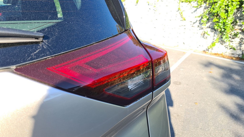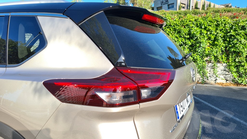 En la parte trasera de la carrocería el diseño es algo más parecido al de la generación anterior, aunque los grupos ópticos de diseño geométrico, como en el X-Trail anterior, están más elevados y están colocados de forma que la línea de la luna trasera no desciende sino que queda marcada por una línea horizontal. La parte superior del portón queda delimitado por los grupos ópticos que quedan partidos por la abertura del maletero en una zona de la carrocería que sobresale y donde se coloca el escudo de la marca y el nobre del modelo, que ya no se encuentra en la parte inferior del portón.