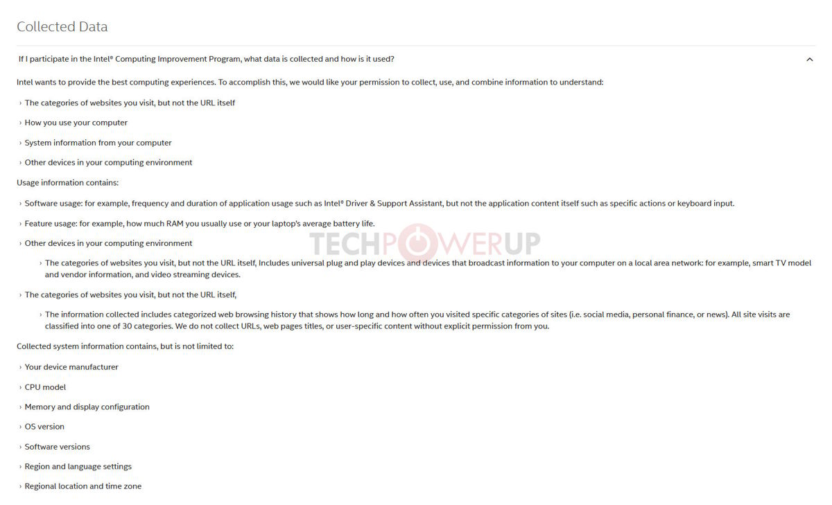 Compute Improvement Program, telemetría incluida en el instalador de los drivers graficos de Intel. Fuente: TechPowerUP.