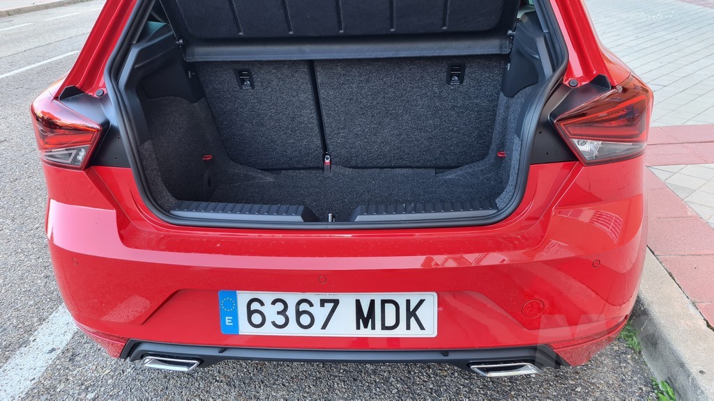 En lo que respecta al maletero la capacidad del Ibiza alcanza los 355 litros que pueden alcanzar los 1.165 si se abate la fila de asientos trasera. Es una capacidad notable que coloca al Ibiza entre los mejores de su categoría y lo cualifica como coche con capacidad para viajes largos y buena capacidad práctica para el día a día. El espacio es regular y aprovechable, aunque la forma del maletero coloca en nivel de carga algo elevado lo que dificulta colocar objetos pesados.