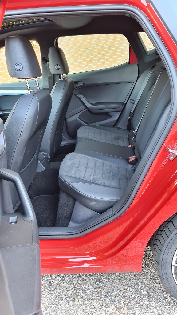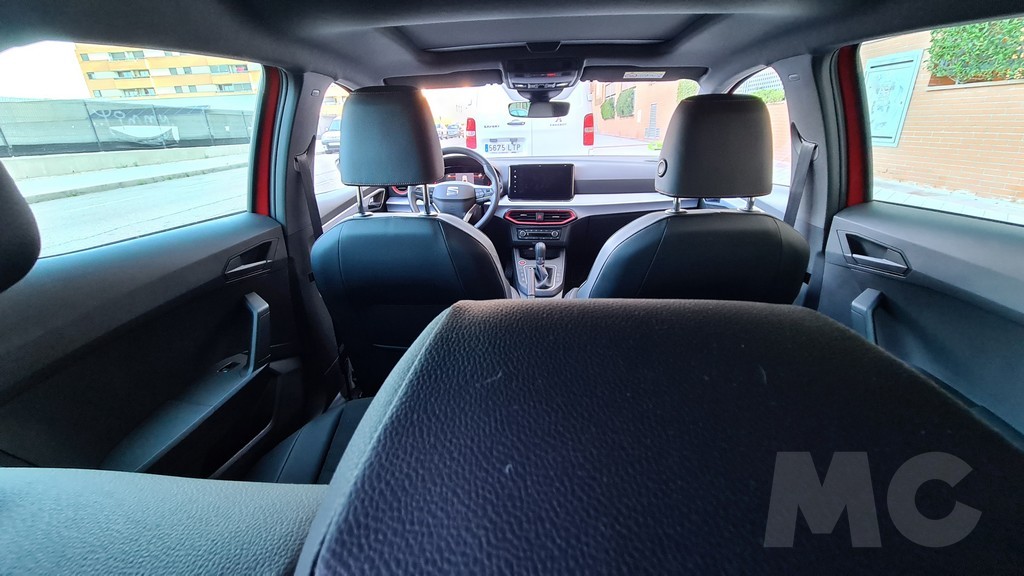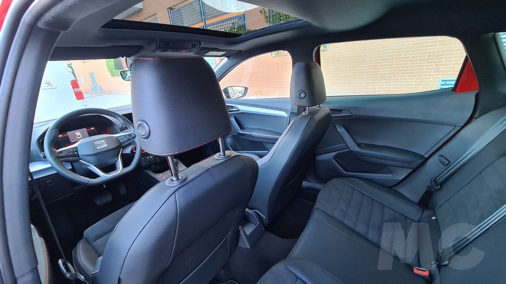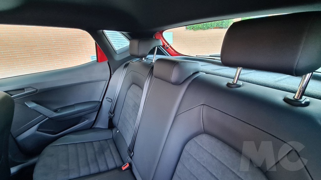 En la parte trasera el espacio para los ocupantes sigue siendo otra de las bazas del Ibiza, con especial atención a la altura libre que permite sentarse a personas por encima del metro ochenta. El espacio para las piernas también es bueno considerando el tamaño del coche y el acceso notable por el hueco generoso que dejan las puertas al quedar abiertas. Como en cualquier otro coche de la categoría el espacio es bueno en anchura para dos personas pero una tercera no irá cómoda, también por la forma de la banqueta en la parte central.