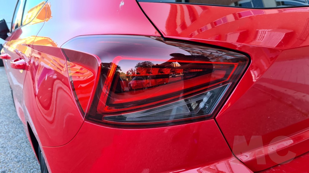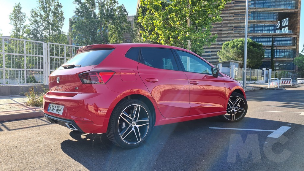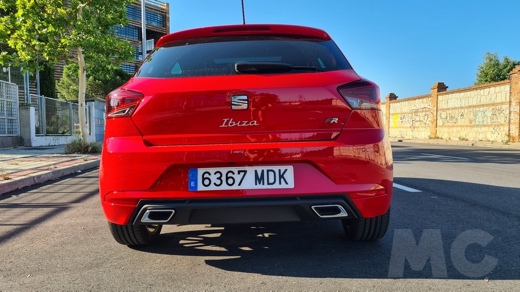 El aspecto de la parte de atrás es la clásica del Ibiza con dos grupos ópticos que se muestran poco sobre el maletero y se extienden en los laterales y que se encuentran elevados. El portón se corta sobre estos grupos ópticos y deja en la parte inferior un generoso parachoques que es muy útil en las maniobras urbanas yla vida de utilitario de ciudad en general. Los dos escapes que surgen de una moldura de plástico negro que remata la parte inferior agregan otro ingrediente deportivo al conjunto.