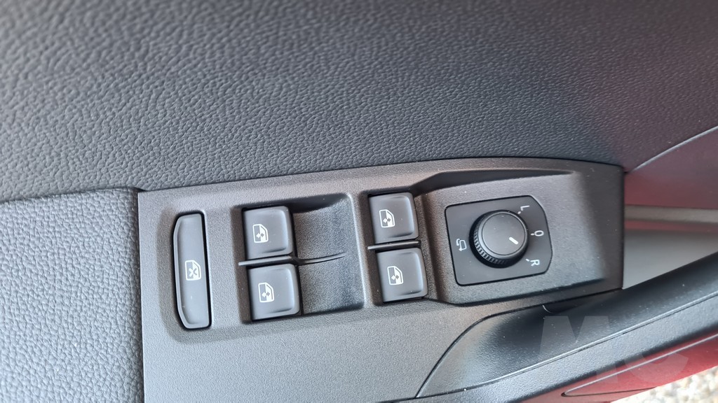 Hay que decir que los acabados en la parte de atrás son algo más espartanos que en la parte delantera. El acolchado y la tapicería son de buena calidad y los asientos son cómodos pero por ejemplo se ha prescindido en esta parte trasera de las costuras en color rojo de la parte delantera. Asimismo se echan en falta detalles como conectores USB o salidas de aire e incluso asideros para el techo. También los acabados de las puertas son menos cuidados en esta parte trasera.
