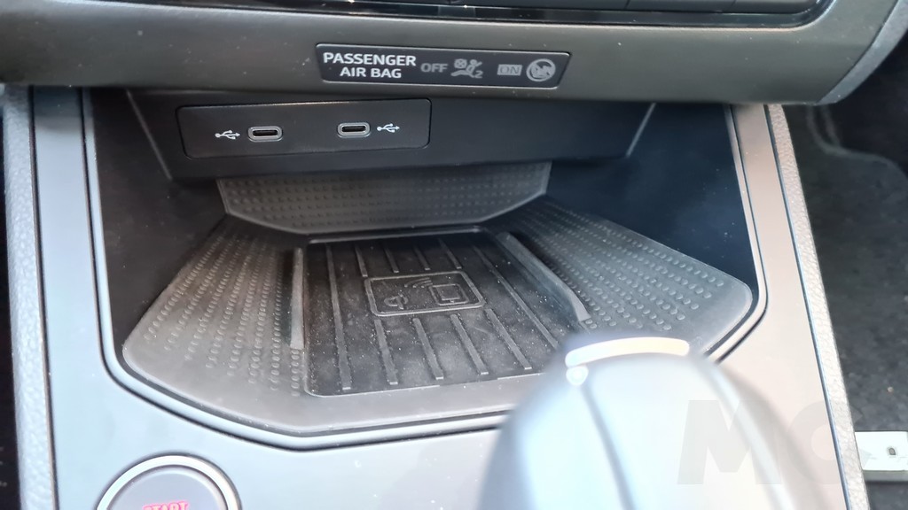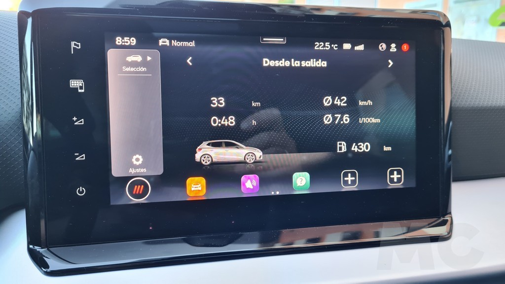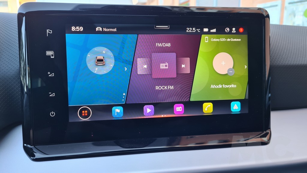 El sistema multimedia dispone de una pantalla de 9,2 pulgadas de buena calidad con compatibilidad con Android Auto y Apple Car Play de forma inalámbrica. En la parte inferior del salpicadero encontramos un espacio para colocar el smartphone algo pequeño pero que dispone de superficie de carga inalámbrica además de dos conectores de tipo USB-C. En lo que respecta a la instrumentación esta es de tipo digital mediante una pantalla cuadrada en el centro flanqueada por los indicadores de temperatura del motor y estado del depósito de combustible.