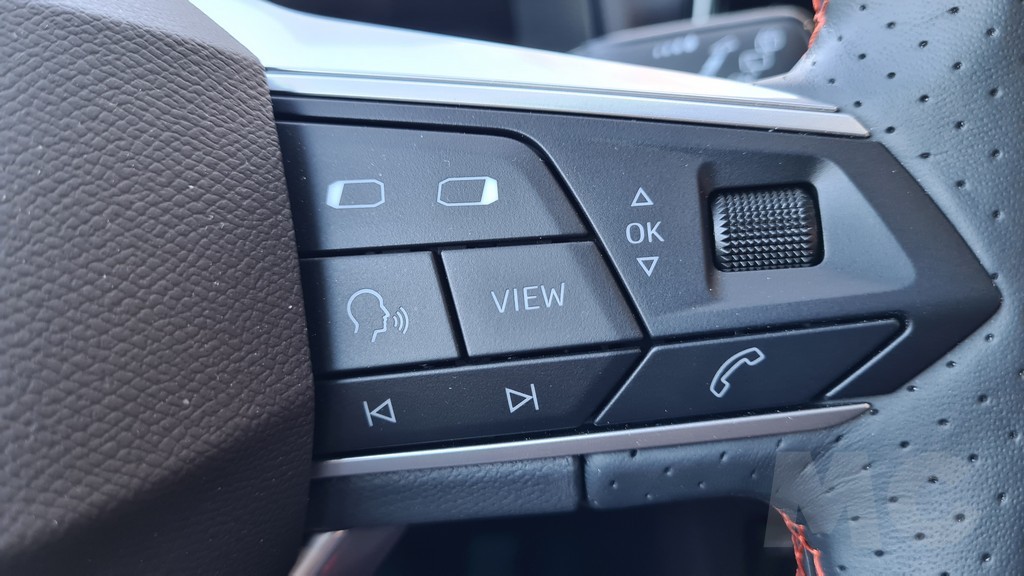 Nos han gustado detalles como los mandos de climatización que siguen siendo físicos y con su propio display para mostrar la temperatura y en general lo racional de la disposición de todos los controles. Por ejemplo los mandos que encontramos en el volante son de accionamiento lógico e intuitivo con una rueda para el volumen en la parte izquierda y otra en la parte derecha para cambiar entre opciones del menú. En general el diseño limpio del saplicadero con detalles deportivos da un aspecto agradable a esta parte delantera.