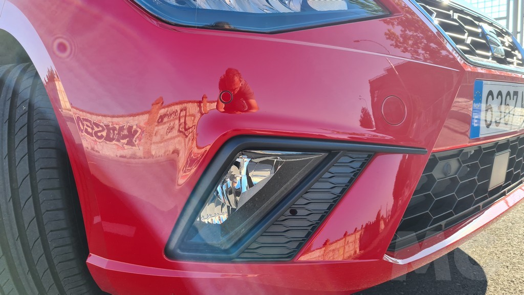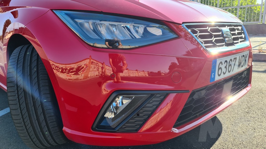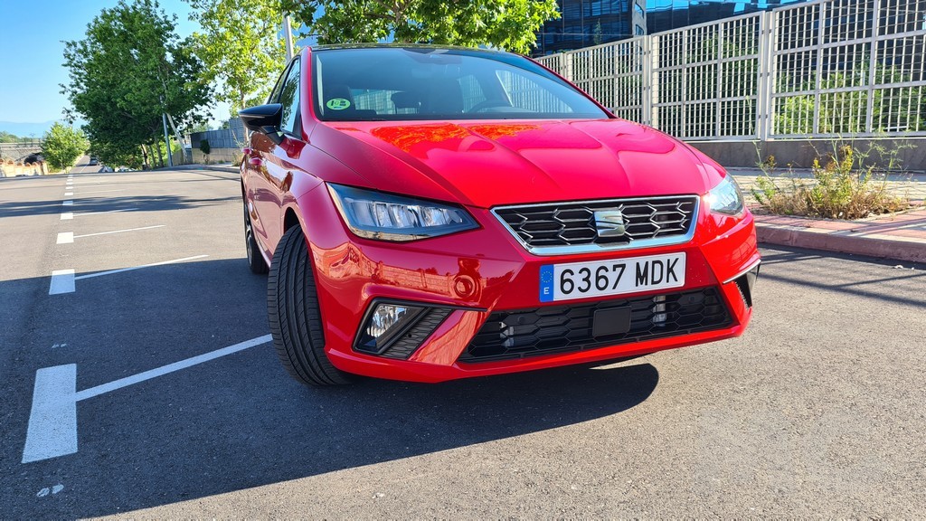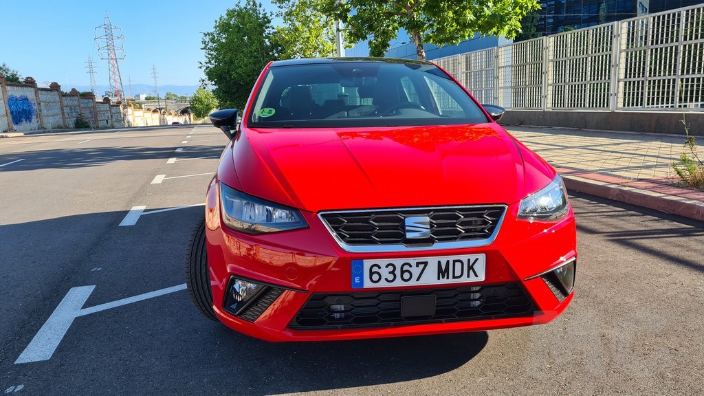 Una de las primeras impresiones al observar el Ibiza por fuera es que Seat ha conseguido mantener cierto aire de familia de este modelo durante el tiempo, un diseño que provenía de las mesas de diseño de Giugiario en sus primeras versiones. En la parte delantera se aprecia un capó con relieves agresivos que llevan a unos grupos ópticos y una parrilla con líneas rectas poligonales que marcan el tipo de diseño del frontal. En el centro de dicha parrilla podemos ver la tradicional S que distingue a la marca de Martorell.