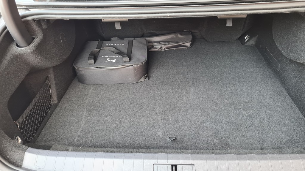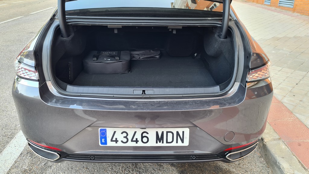 El maletero de este DS9 es muy amplio para un total de 510 litros. Eso sí, el diseño alargado y aerodinámico de la carrocería hace que el espacio sea sobre todo profundo ya que por ejemplo en altura es algo escaso, aunque no tendremos problemas en introducir equipaje de medidas habituales. El espacio que queda al abrir el maletero es grande por lo que se facilita mucho el acceso al mismo. Además las formas son regulares y no hay obstáculos por lo que introducir objetos grandes no es un problema, con las limitaciones de altura que hemos comentado.