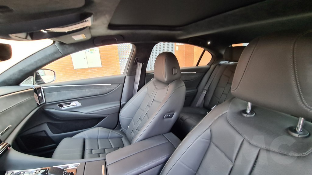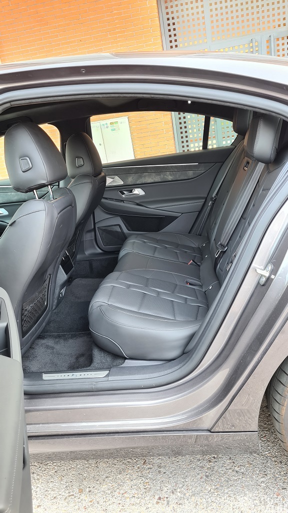En la parte posterior se ha sacado partido del tamaño del coche por un lado para tener un buen acceso con una puerta amplia que tiene un gran ángulo de apertura y por otro lado porque ofrece un gran espacio para que tres personas puedan acomodarse sin problemas. Es cierto que por diseño (para proporcionar un reposabrazos sobre todo) la plaza central es más incómoda que las dos de los laterales. Lo que más destaca en lo que respecta a la habitabilidad en las plazas posteriores es sin duda el espacio para las piernas, cualquier persona se encontrará a sus anchas en este sentido.