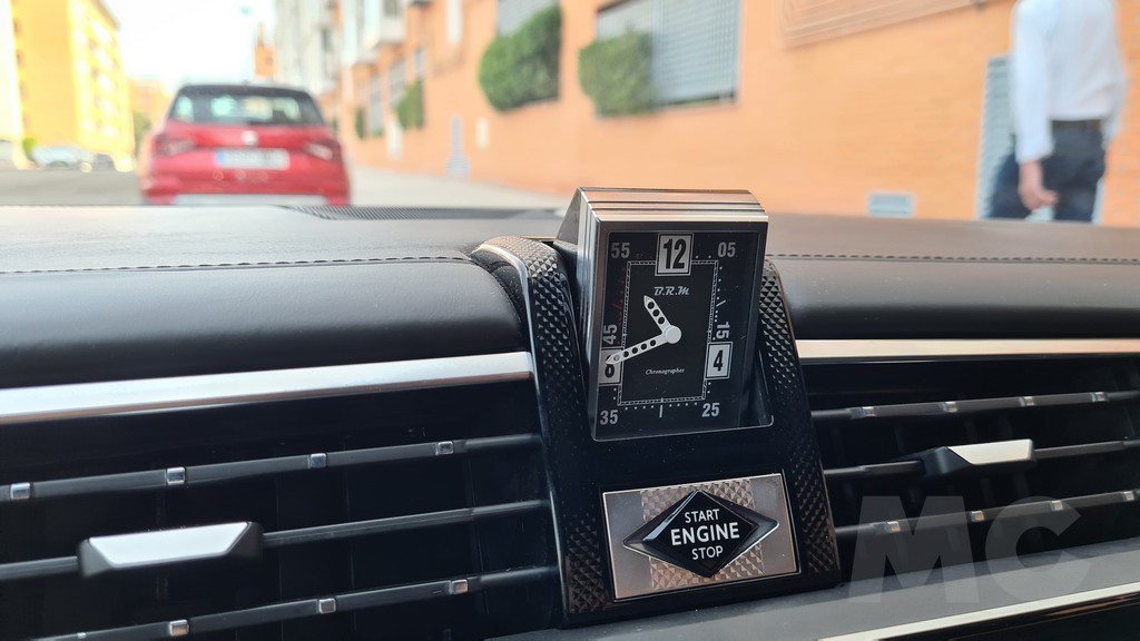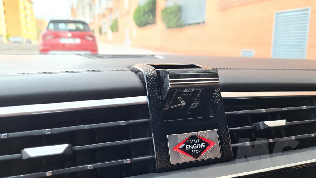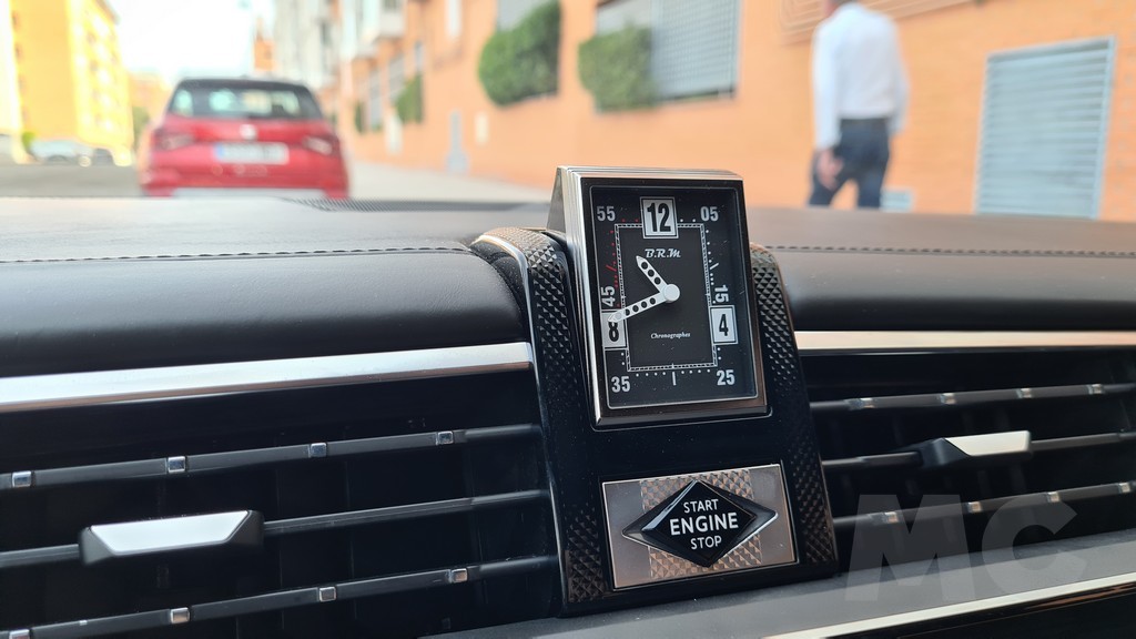 Por el otro encontramos esta decoración en elementos del reloj B.R.M Chronographs que se muestra automáticamente al encender el motor que se encuentra de la parte central superior del salpicadero ya clásico de los modelos DS. Un toque sorprendentemente retro en un modelo que está por otro lado repleto de tecnología. El salpicadero está tapizado en una combinación de piel tipo Alcantara y otras superficies cubiertar por piel Nappa en color gris perla con pespuntes en color claro lo que se traduce en una sensación agradable al tacto en cualquier punto del mismo.