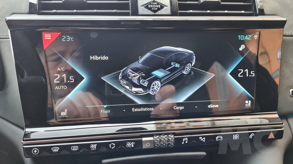 El sistema de información y entretenimiento está gobernado por el nuevo sistema DS IRIS SYSTEM que gobierna tanto la pantalla táctil de 12 pulgadas como un sistema de reconocimiento de voz. La primera tiene buena calidad, pero no muy superior a la que encontramos en otros modelos del mismo grupo aunque la gráfica ha sido actualizada. El sistema de reconocimiento de voz es correcto pero tampoco nos ha parecido comparable al que equipan los modelos más exclusivos de la competencia alemana de este DS9. En cualquier caso el funcionamiento es bueno.
